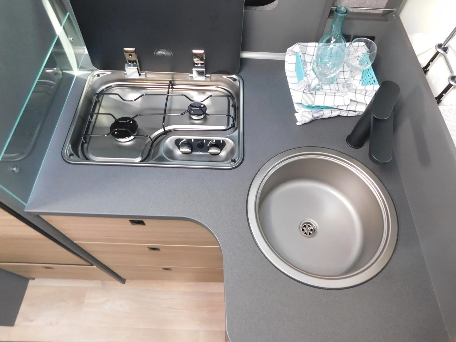 - Winterkomfort-Paket Warmluft (Schalter für Wasserpumpe, Unterbodenleitungen isoliert, Abwassertank isoliert, Abwassertank und -leitungen elektrisch beheizt, Gas Warmluftheizung 6 kW mit 1,8 kW Elektroheizstab und Warmwasserboiler inkl. digitalem Bedienelement, XPS Aufbau-Isolierung)