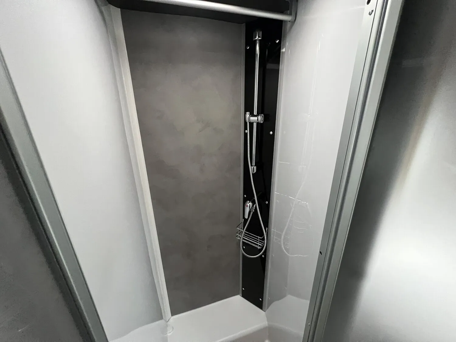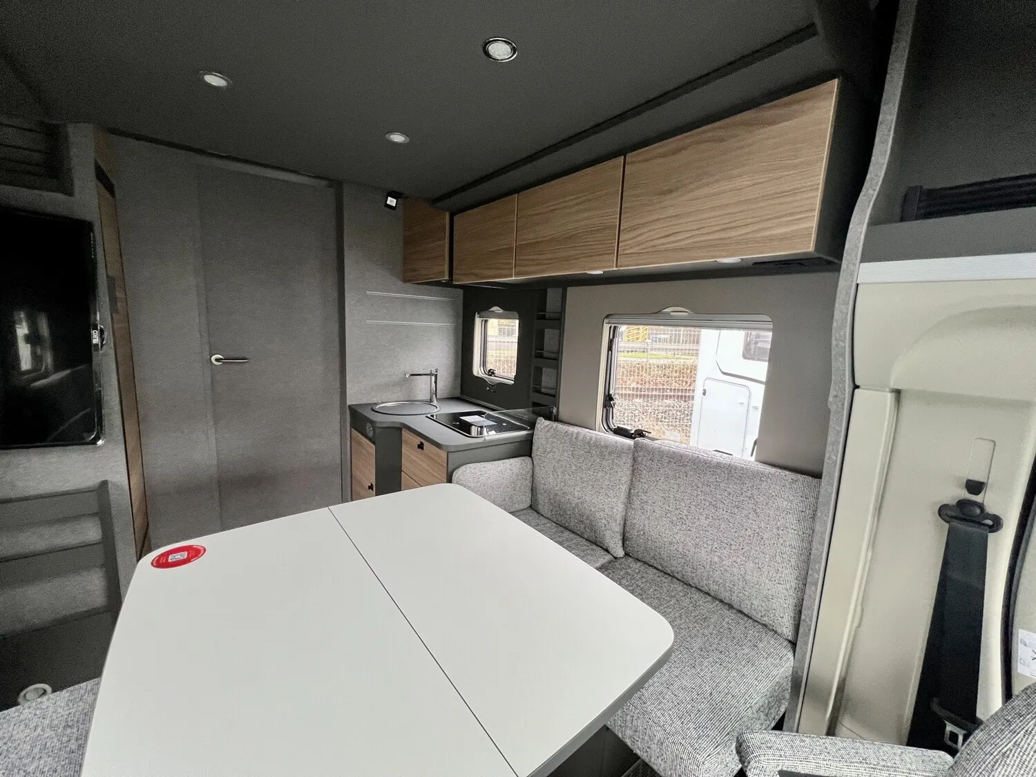 - Family-Paket T 7057 DBL (Wohnraumtür mit Fenster inkl. Verdunkelung und Zentralverriegelung (inkl. Fahrerhaustüre), Verdunklungsjalousien im Fahrerhaus, Vorbereitung für Radiosystem inkl. Soundpaket im Fahrerhaus, Light Moments: Indirekte Ambientebeleuchtung über den Dachstauschränken, Light Moments: Indirekte Wandflächen-Ambientebeleuchtung, Light Moments: Küchenrückwand beleuchtet, Light Moments: Indirekte Beleuchtung im Badezimmer mit beleuchteter Duschkonsole, Light Moments: Eingangsmodul mit indirekter Beleuchtung)