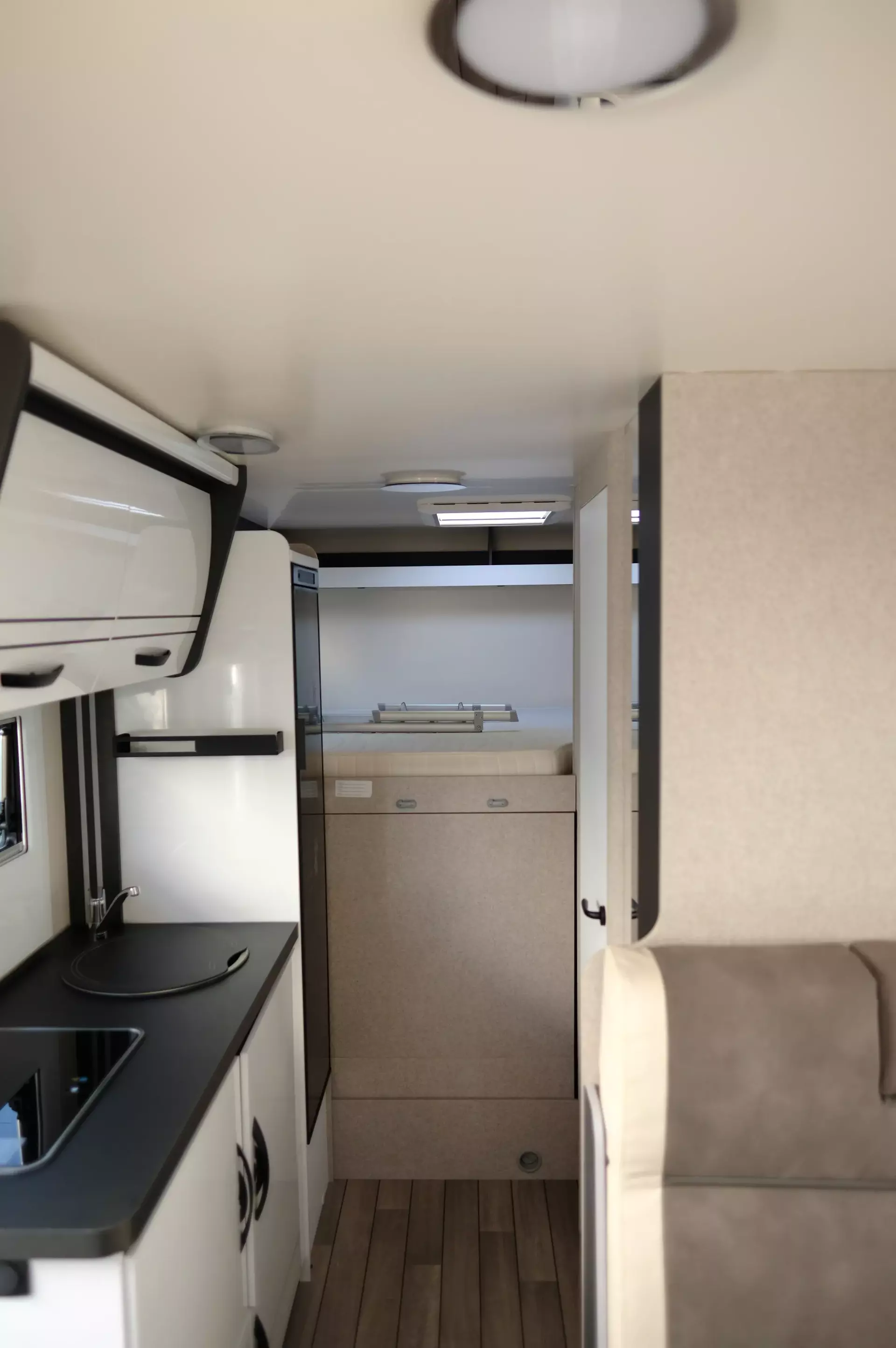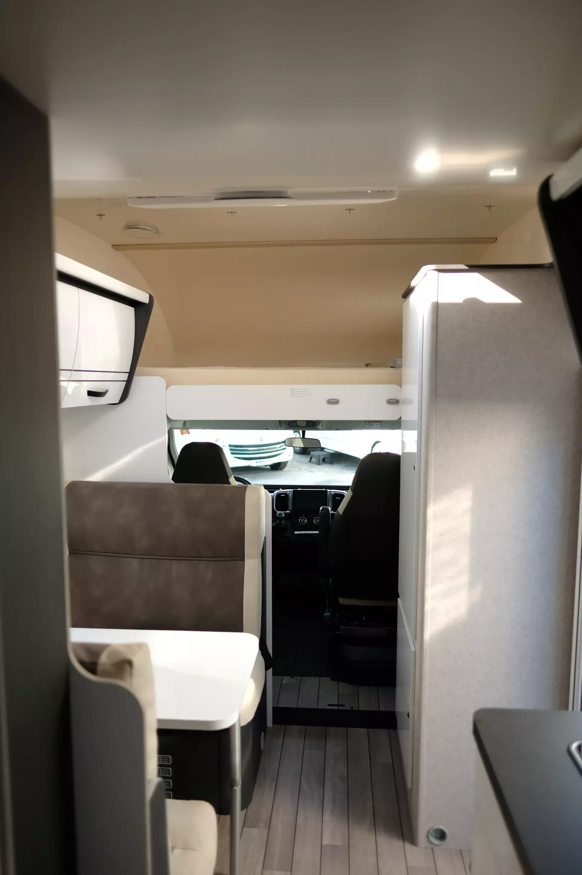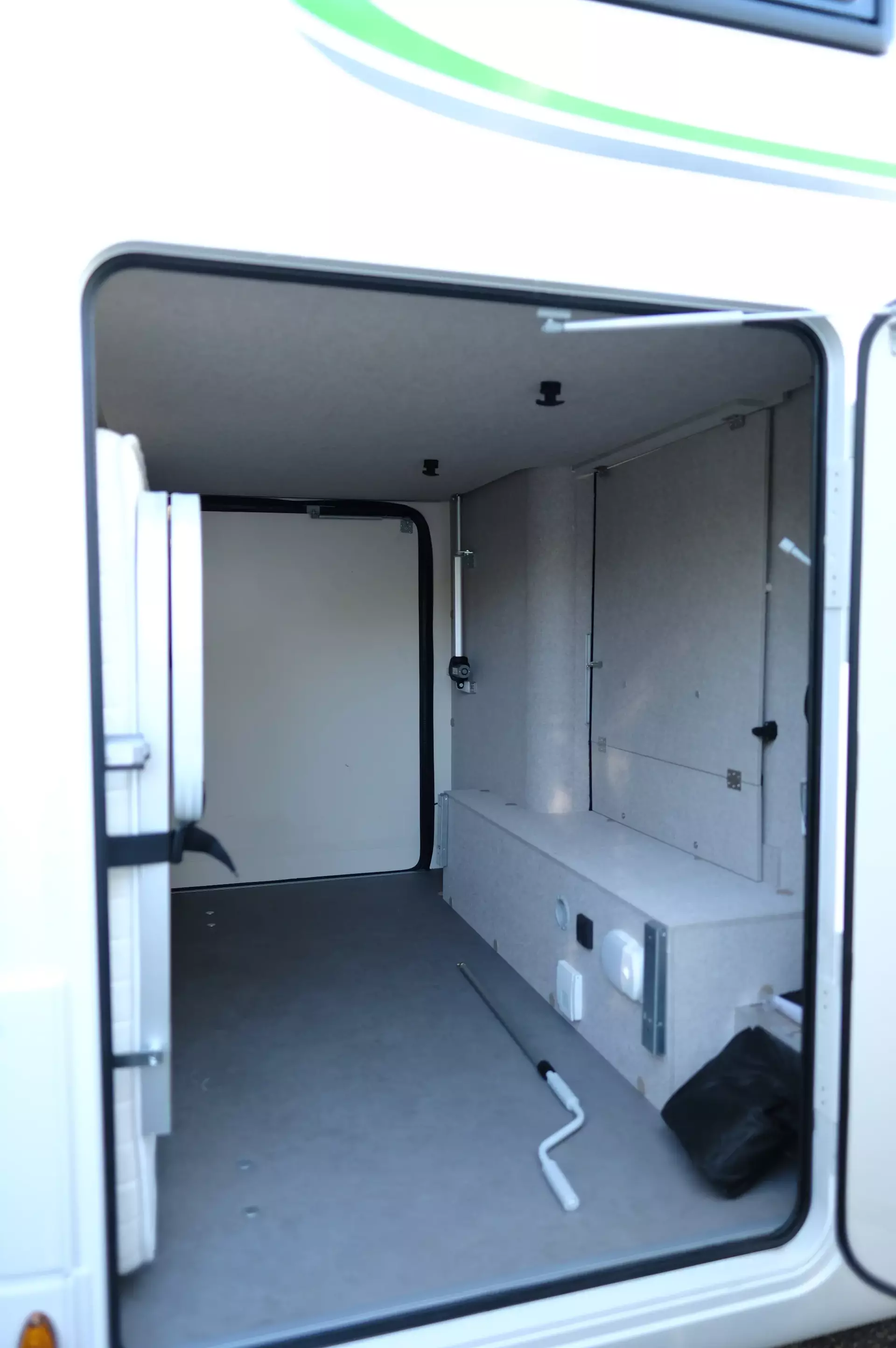 Einer für Alle. Alkoven, Sitzgruppe und Etagenbetten mit großer Garage. Hier findet jeder und alles seinen Platz !