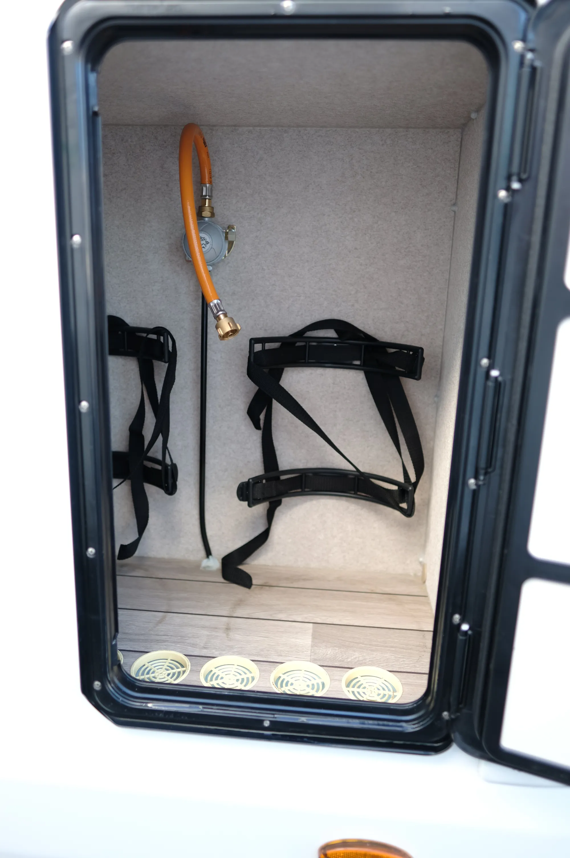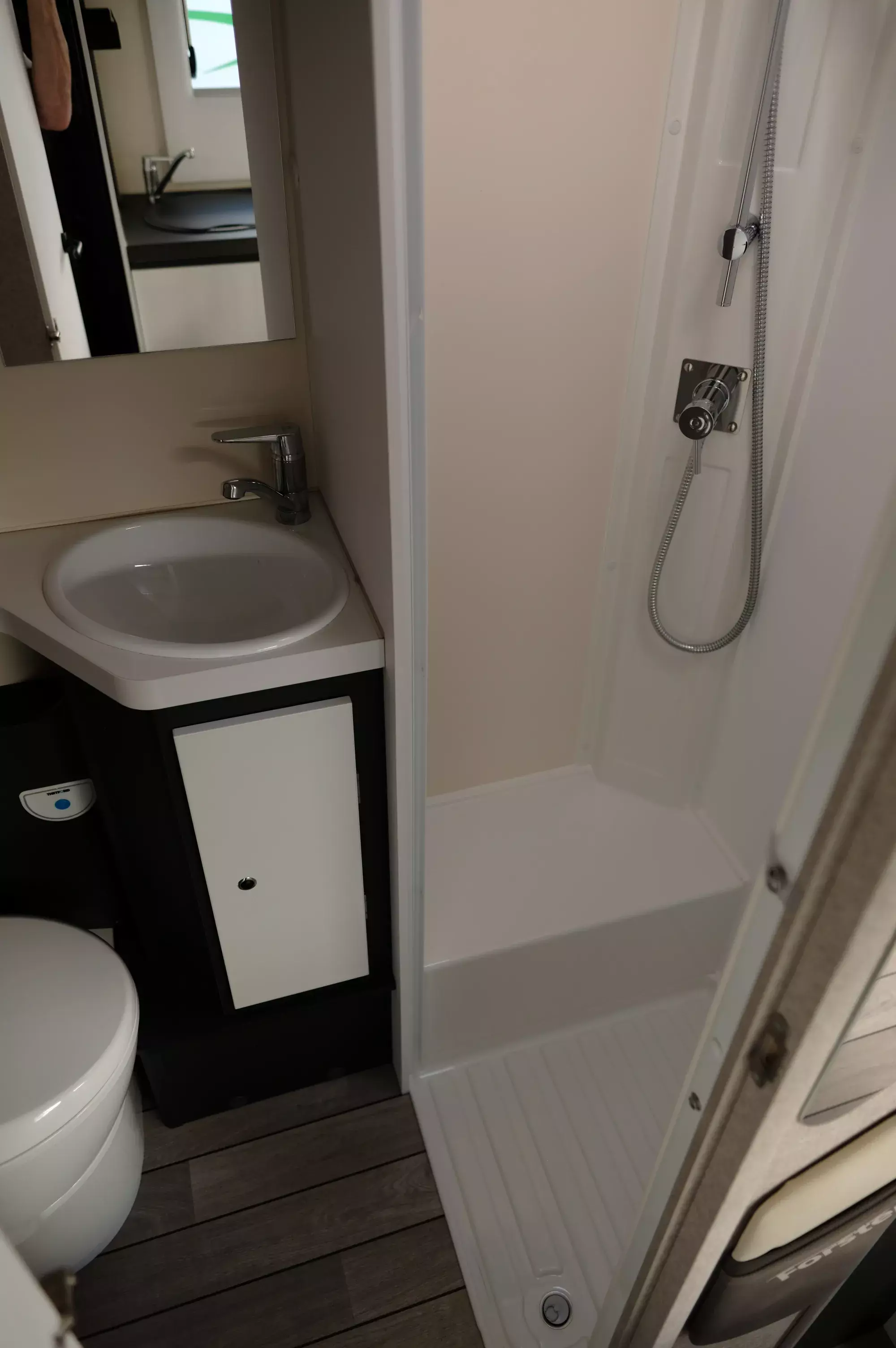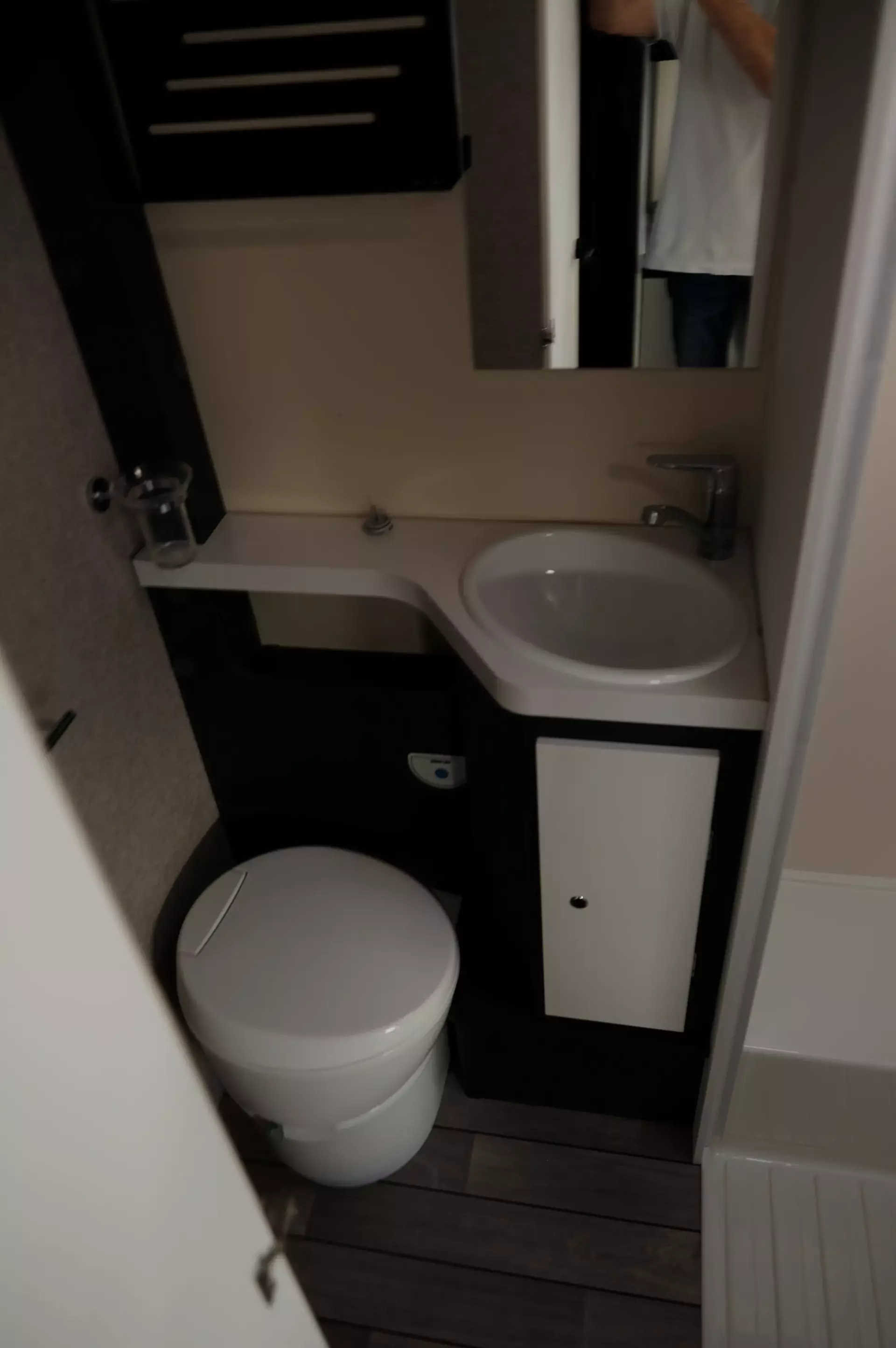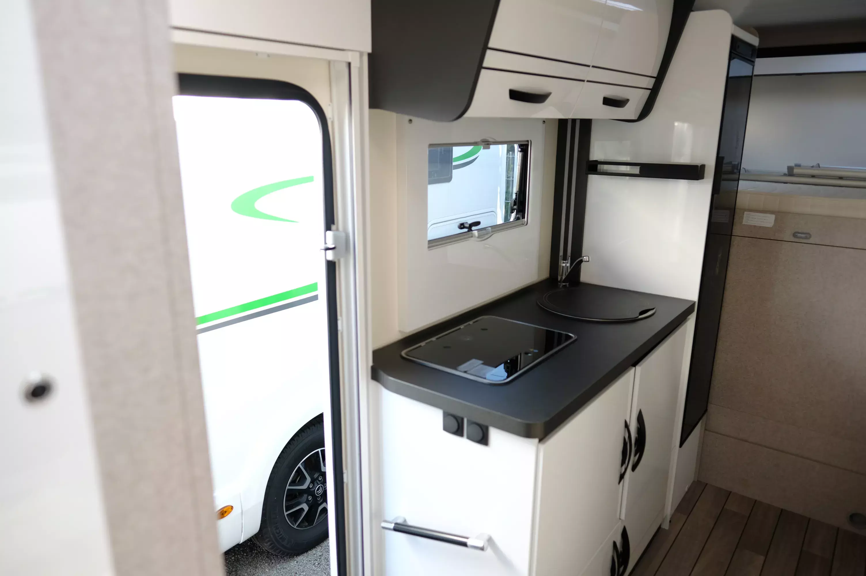 Einer für Alle. Alkoven, Sitzgruppe und Etagenbetten mit großer Garage. Hier findet jeder und alles seinen Platz !