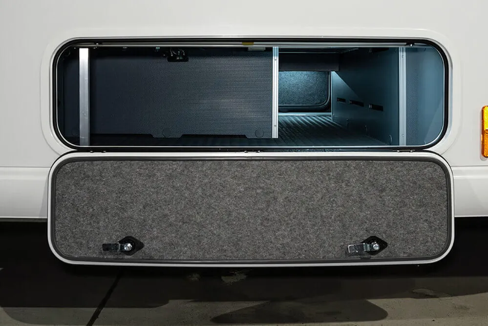 - Zus. Außenklappe Garage links (hinten links in Heckgarage. Größe und Position gemäß Fertigungszeichnung. )