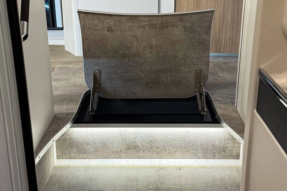 - ED. TOGETHER Serienausstattung (Mod. 2026) (Spezielle EDITION TOGETHER Außenbeklebung, hochwertige Stoffauswahl, manueller Sichtschutz/Verdunklungsplissee bei Alkoven/Teilintegriert, bei integrierten mit Taglichtfunktion, Stauraumbeleuchtung unter Sitzgruppe, man. Heckstützen (Entfall bei Bestellung Option Luftfederung), Zentralversorgung, Keramik-Toilette, zweite Thedfordkassette, Batterie 300 AH LiFePO4, dimmbare Ambiente- und Spotbeleuchtung, Leseleuchten, Warmwasserheizung ALDE 3030,Frischwassertank mit einstellbarer 50 l Fahrebefüllung, 2 x 100 W Solarmodul, Wechselrichter, DuoControl, Rückfahrkamera, zusätzlich TV Steckdose, WiFi Router, 32 Zoll Smart TV, 11 Jahre Dichtigkeitsgarantie, Markise, Beleuchtungsprofil für Markise A 680 Plus: 4 m Markise manuell (Anthr.) I 680/A 740/I 740 Plus: 4,5 m Markise manuell (Anthr.). Steckdosen: 4 x 230 V Stecldosen (wie Exklusiv Ausstattung), je nach Grundriss 2 bis 4 USB Steckdosen (wie Exklusiv Ausstattung), Steckdosen in hinterer Heckgarage auf rechter Seite 1 x 12 V und 1 x 230 V (wie Luxury Ausstattung), zusätzliche 230 V Steckdose in Küche (Pos. 13), unterhalb der hinteren, linken Eckvitrine (Pos. 33), in Ablage/Stauraum über Kühlschrank (Pos. 35), hinter dem linken Fahrerhaussitz an Kommode (Pos. 3). Zusätzliche USB Steckdose unterhalb der hinteren rechten Eckvitrine (Pos. 34).)