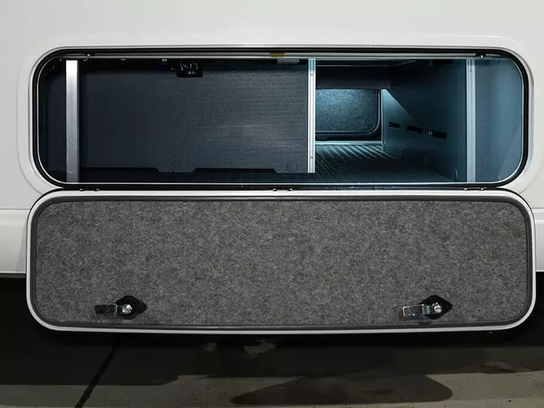 - Zus. Außenklappe Garage links (hinten links in Heckgarage. Größe und Position gemäß Fertigungszeichnung.)