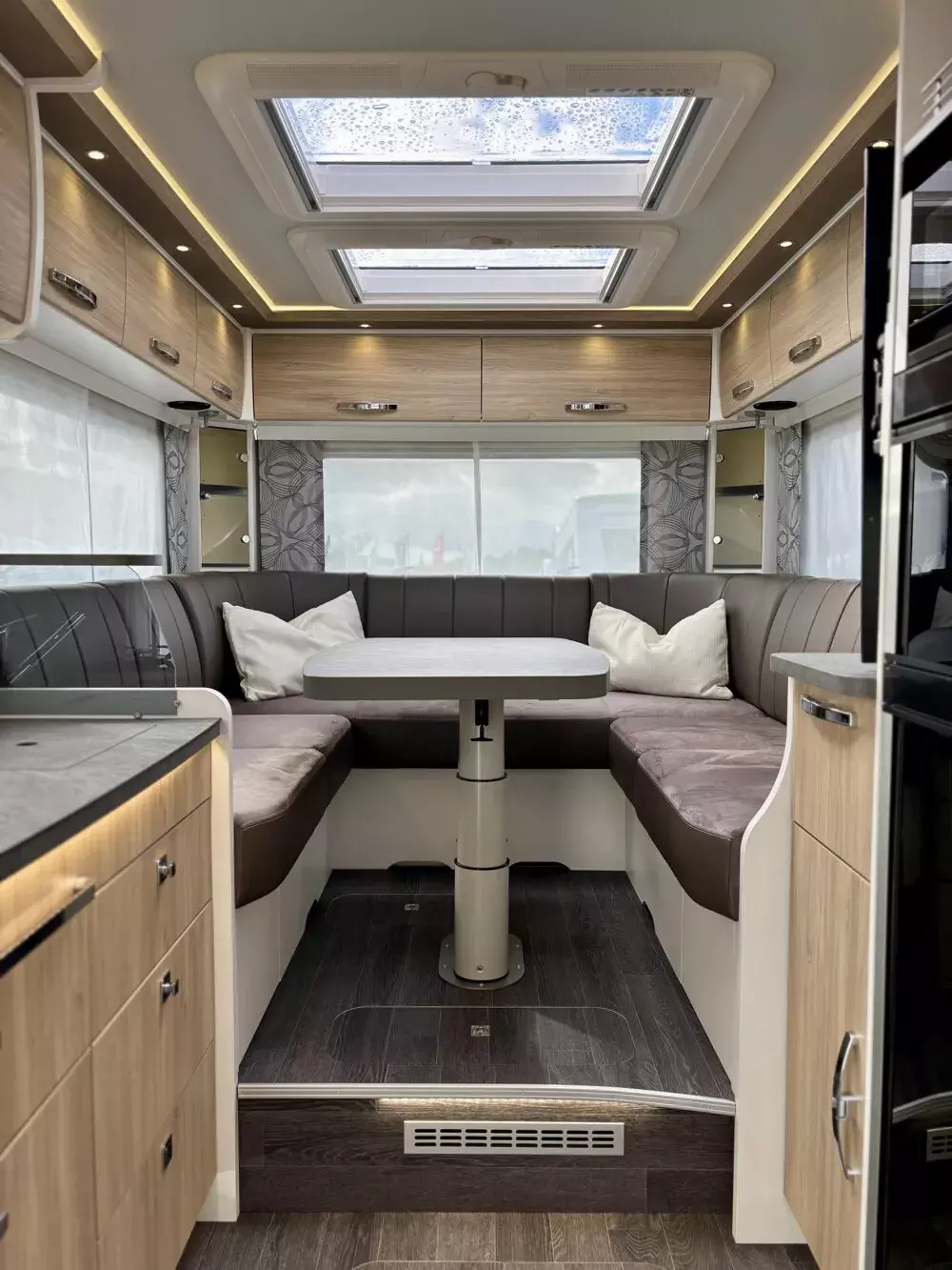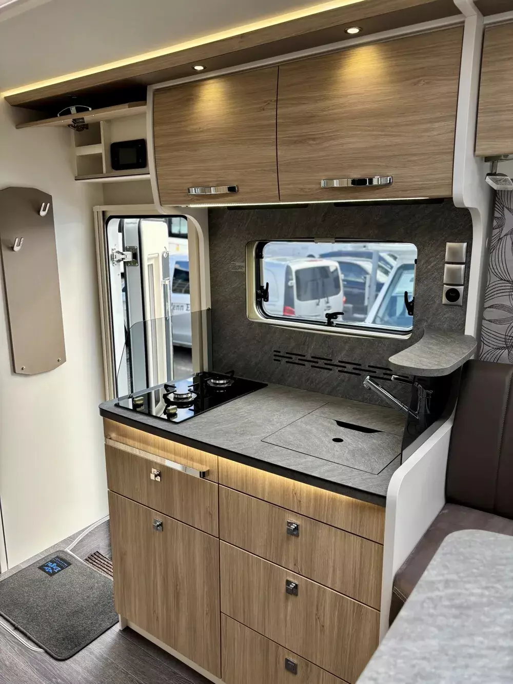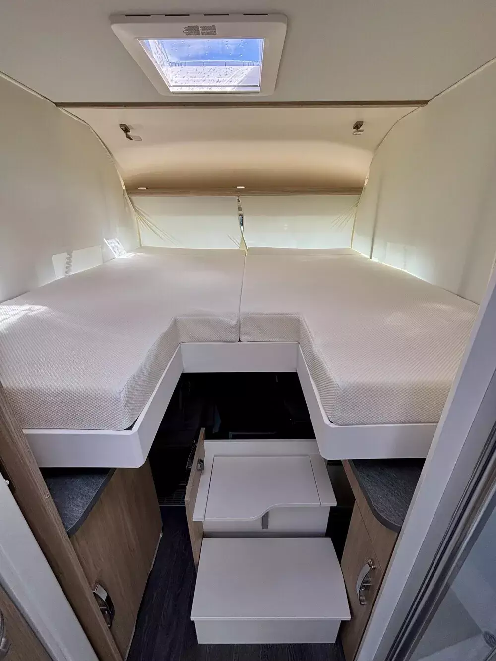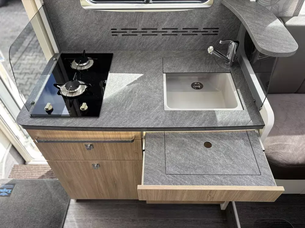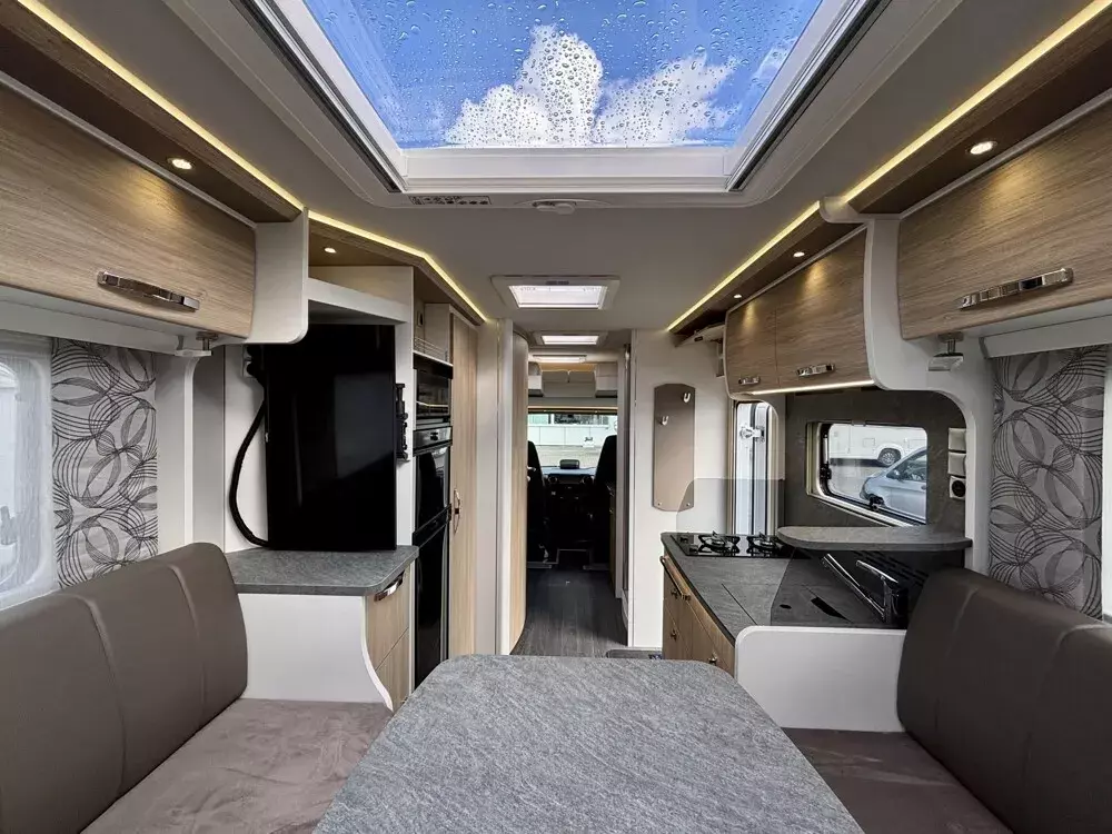 - Serienausstattung Sondermodell Pure bestehend aus: Alufelgen vorne und Alu-Radkappen hinten, Spurverbreiterungen auf Hinterachse, elektr. Verdunklungsplissee, ALDE Warmwasserheizung, Thermo Guard Plus (inkl. 11 Jahren Dichtheitsgarantie), manuelle Markise 5,5 m, Markisengehäuse Anthrazit, Frischwassertank mit einstellbarer 50 Liter Fahrbefüllung, Flachbildschirm SMART TV 32 Zoll im Sitzgruppenbereich, Vorbereitung 2. TV-Platz im Schlafzimmer, Duo Control für Gasflaschen inkl. Eis-Ex, Wechselrichter 1.700 Watt, 3x Solaranlage je 115 W mit Solarregler, Solarfernanzeige, LiFePO Batterie 300 Ah, 1x Lade Booster, 1x Zusatzlader, DAB Radio + MBUX Multimediasystem mit 10,25 Zoll Touchscreen, Rückfahrkamera mit Anbindung an das MBUX, Wifi Router inkl. Dachantenne