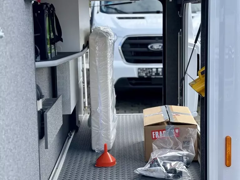 - Wärmetauscher für ALDE Heizung (zur Motorvorwärmung im Winter oder mittels Motorabwärme zum Temperaturerhalt im Aufbau während der Fahrt)
