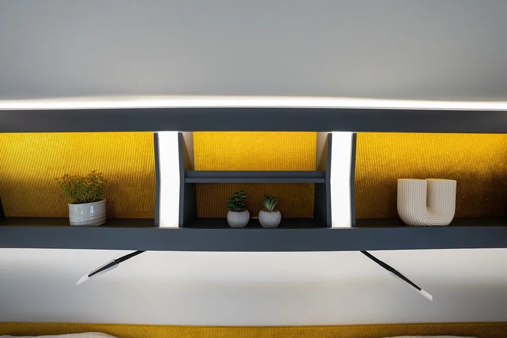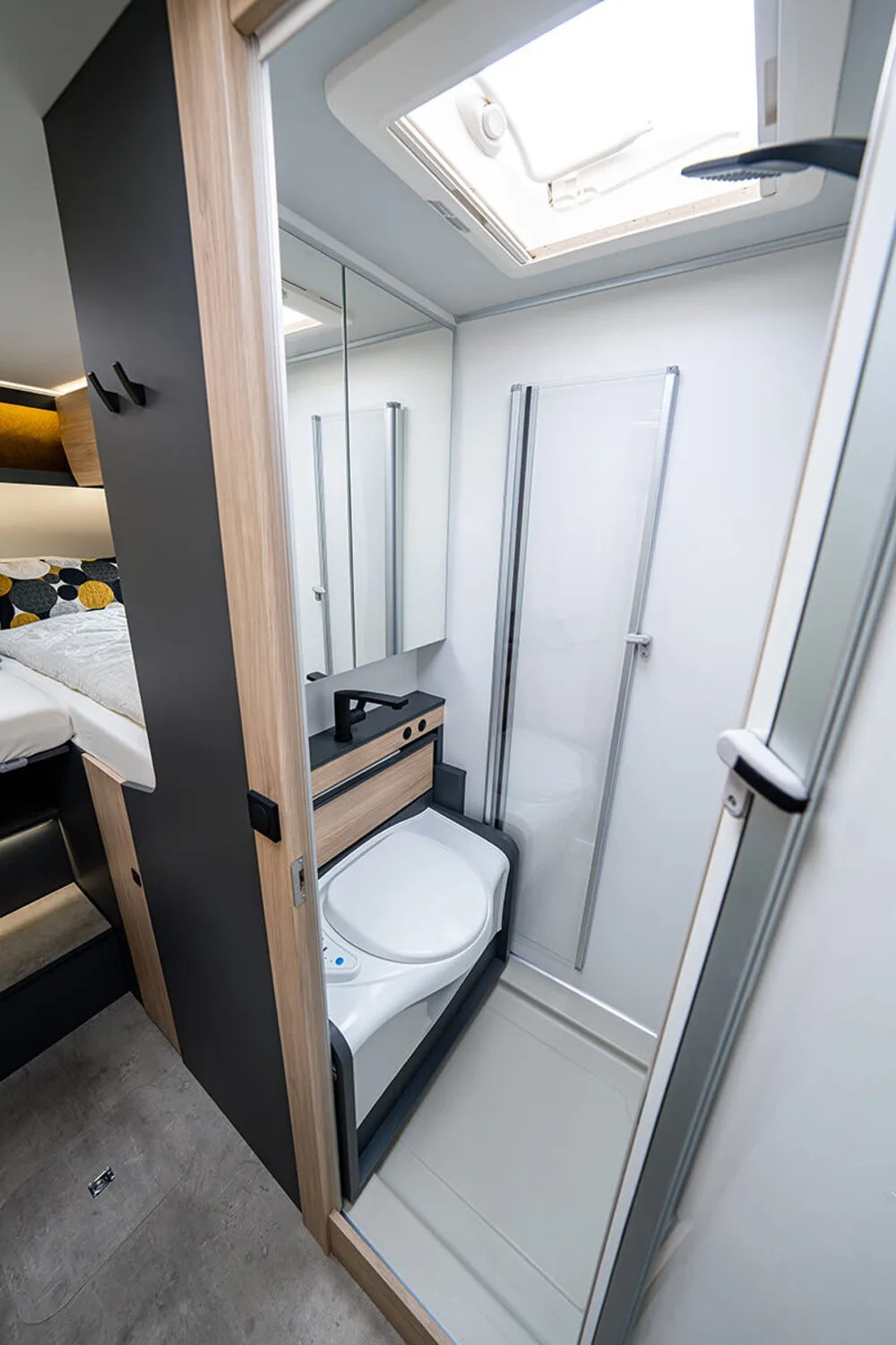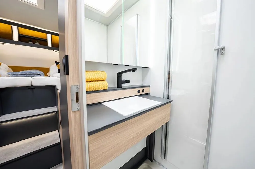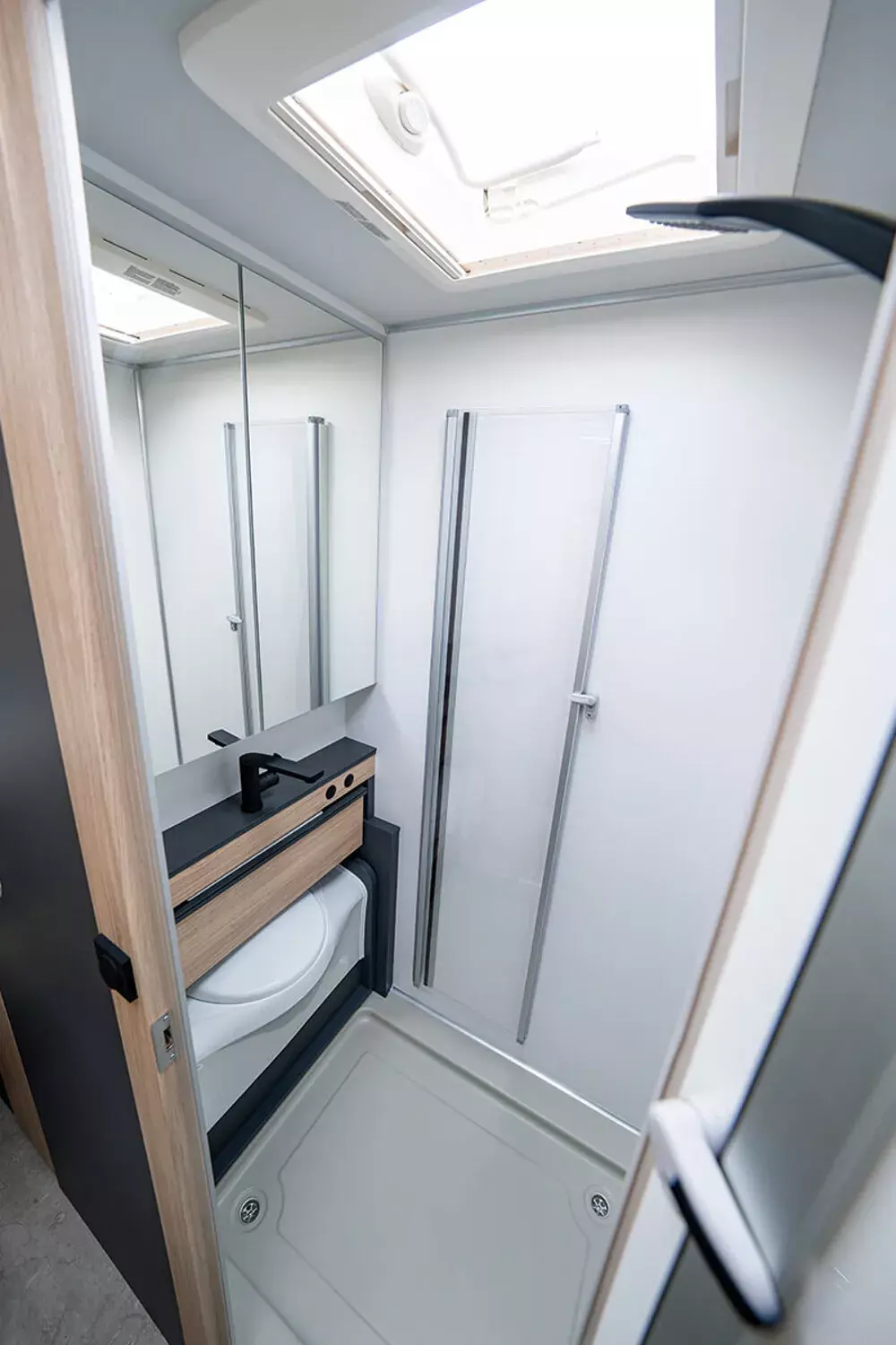 - Neo Licht-Paket (Beleuchtung der Duschsäule, Beleuchtung an der Trittstufe, Lichtband unterhalb der Küchenplatte, Entfall Mini-Heki über Sitzgruppe, dafür Midi-Heki)
