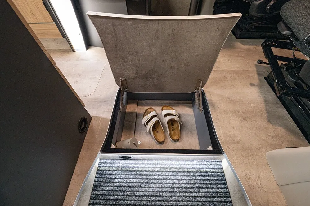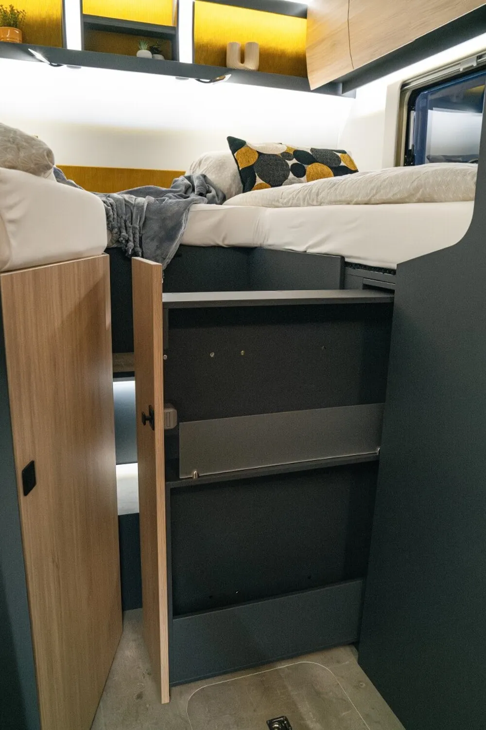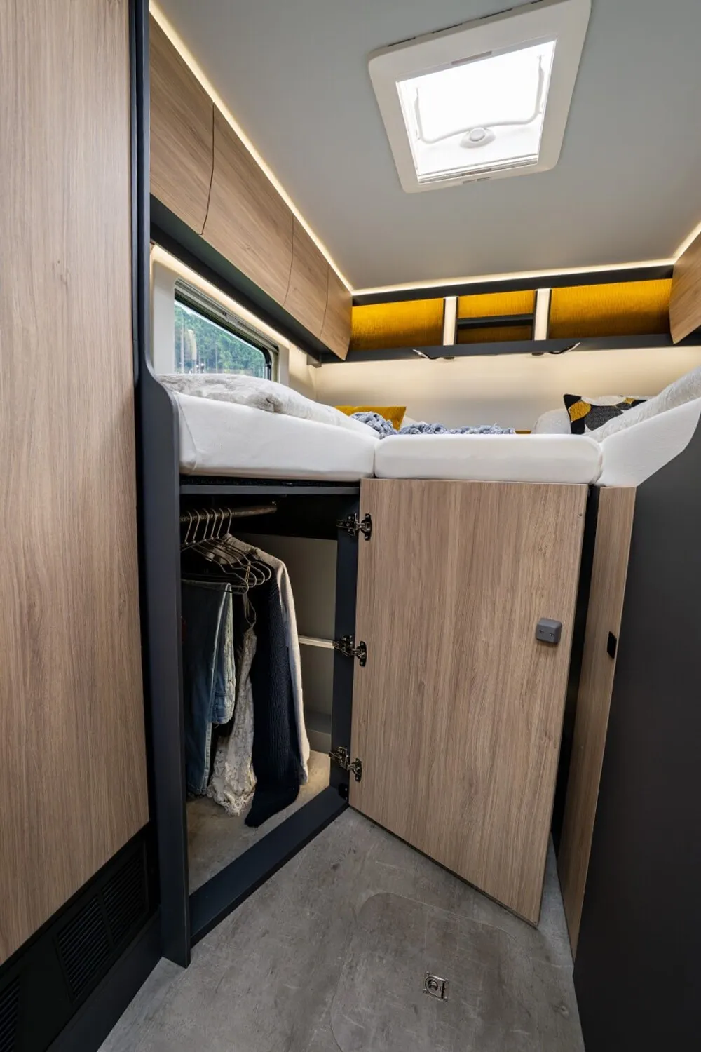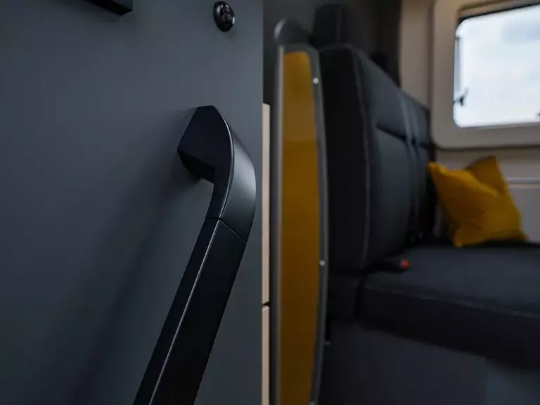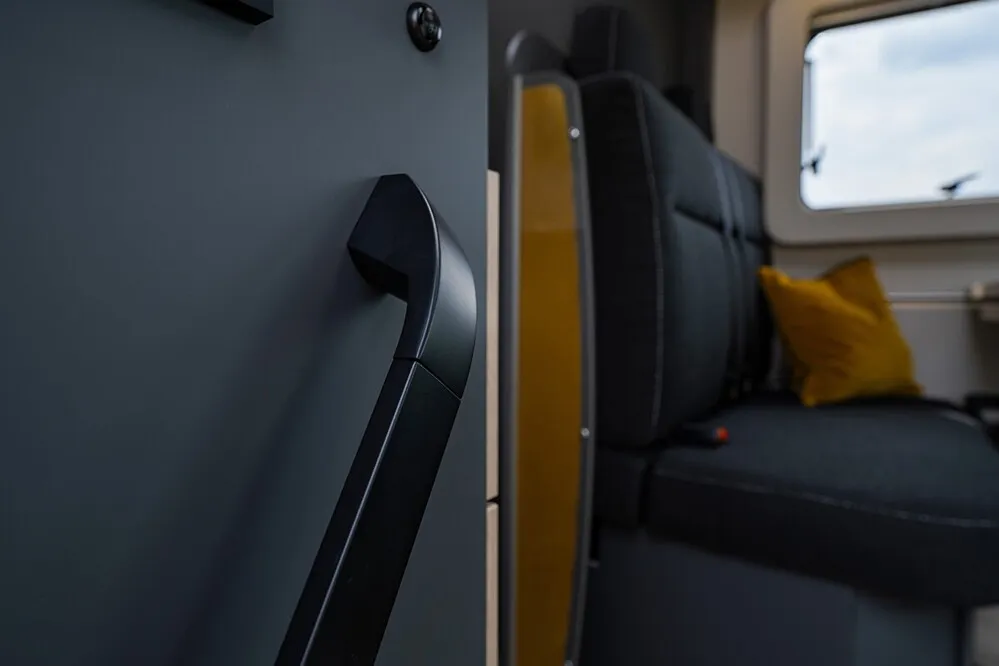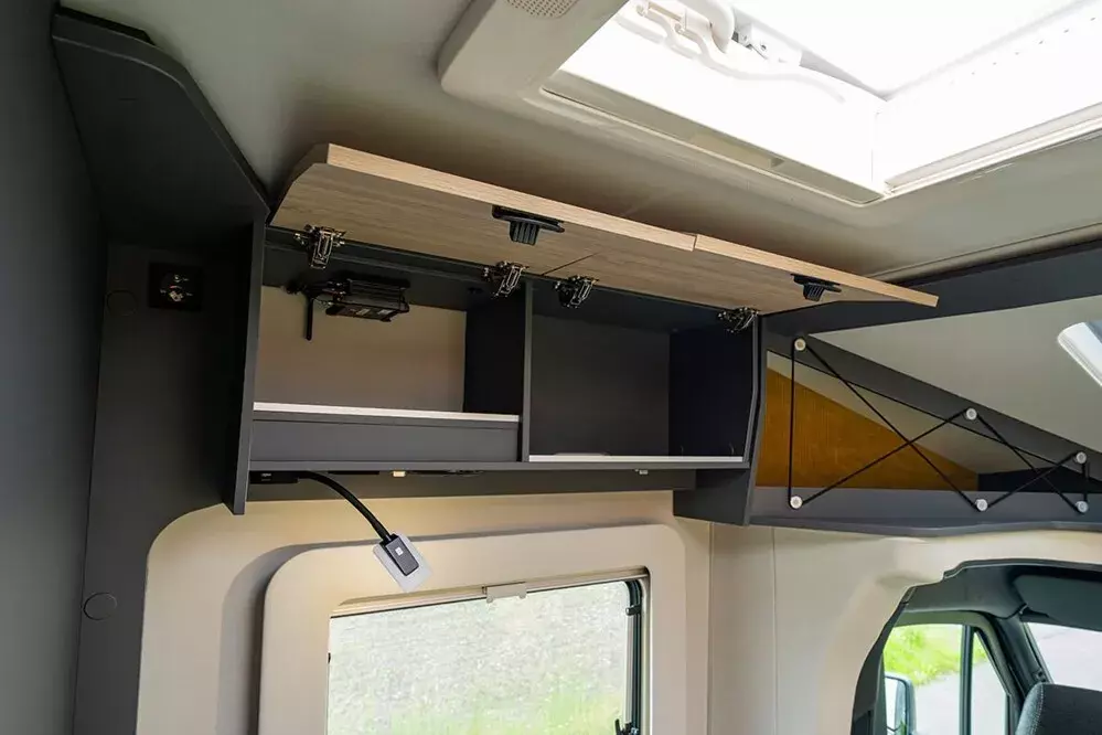 - Neo Smart-Load-Paket (Selbsteinziehende Kabeltrommel inkl. Durchführung in der Außenwand, Heckklappe, Bei Neo GDK: Klappmechanismus für Kleiderschrank unter GD-Bett auf der rechten Fahrzeugseite, Easy-Load-Funktion in Sitzgruppe inkl. Polster (Klappmechanismus für erweiterten Stauraum)