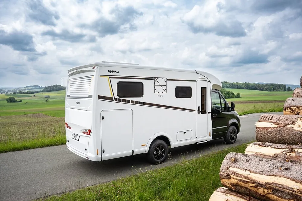 - Neo Ausstattung (Automotives Fahrzeugheck, einzigartiger FRANKIA ThermoProtect Wandaufbau inkl. 7 Jahre Dichtigkeitsgarantie, Frischwasseranschluss in separater Klappe, großzügiger kombinierter Waschraum, Heckgarage mit 1,20 m Innenhöhe, Batterie 1 x 95 Ah AGM, 2 x 230 V Steckdosen, 3 x USB Steckdosen, Heizung Truma Combi 6. Bei MT7 serienmäßiges Panoramafenster in Bugmaske)