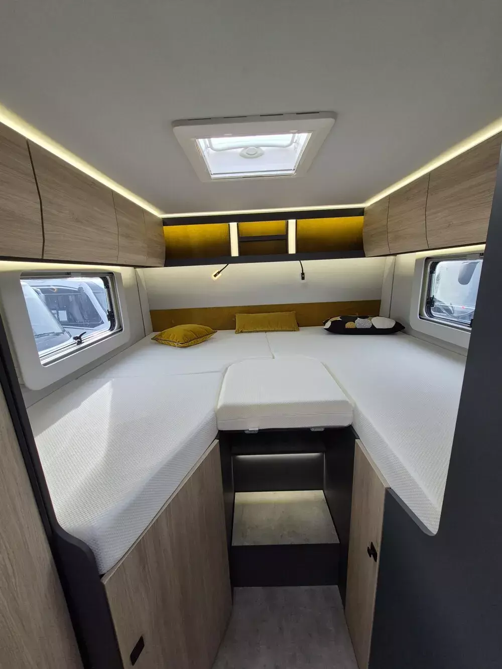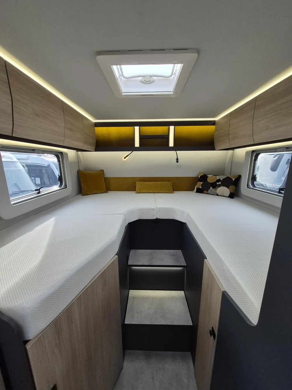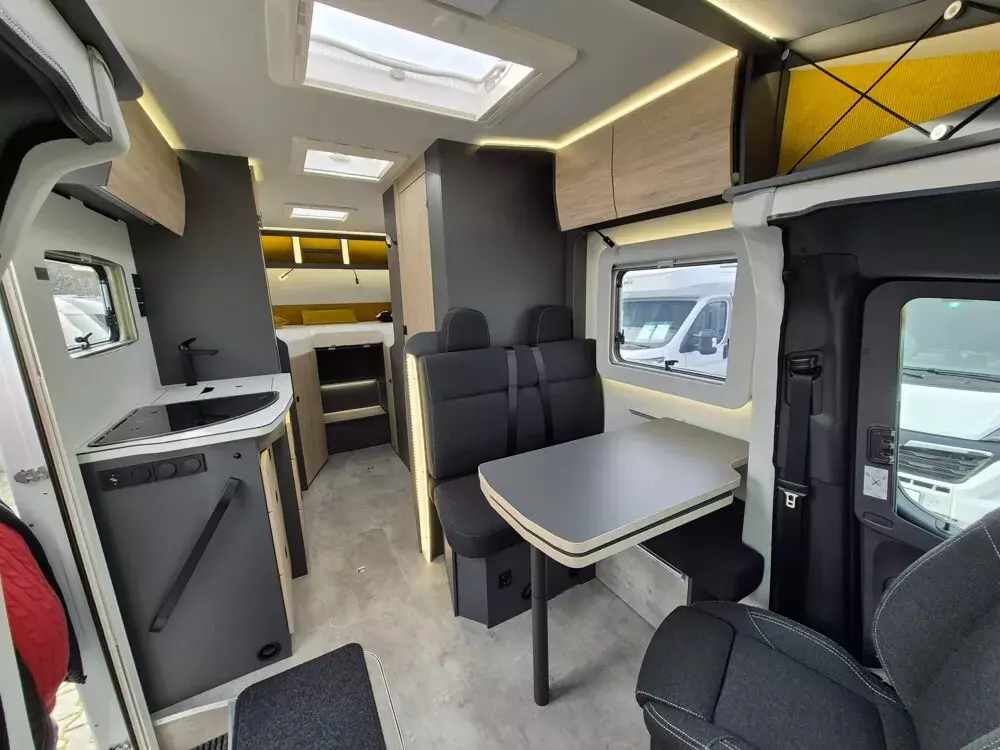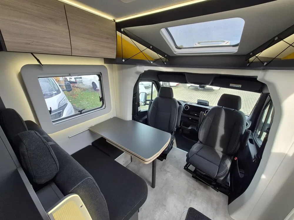 - Neo Licht-Paket (Beleuchtung der Duschsäule, Beleuchtung an der Trittstufe, Lichtband unterhalb der Küchenplatte, Entfall Mini-Heki über Sitzgruppe, dafür Midi-Heki)