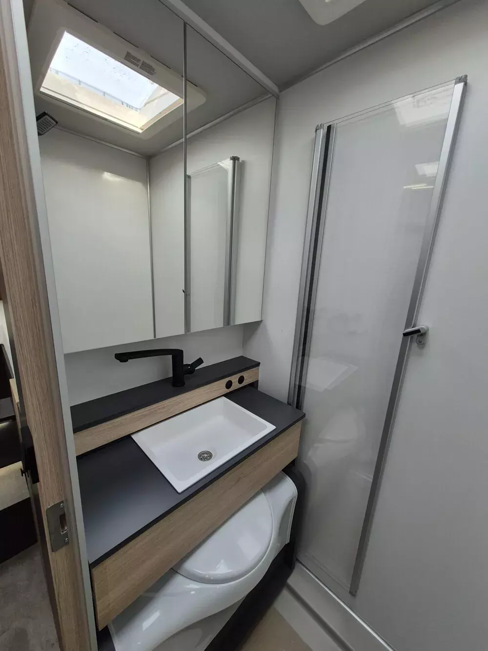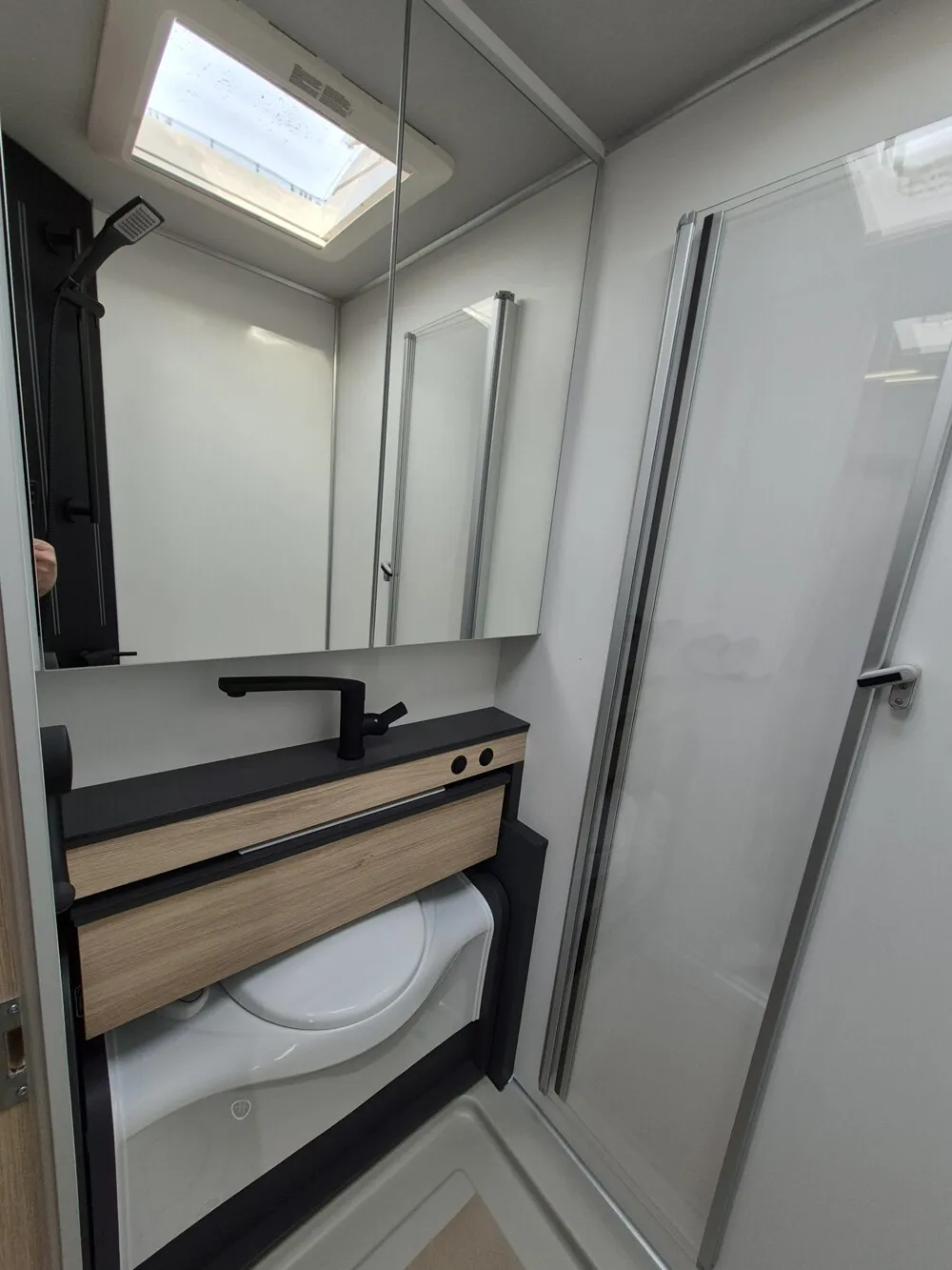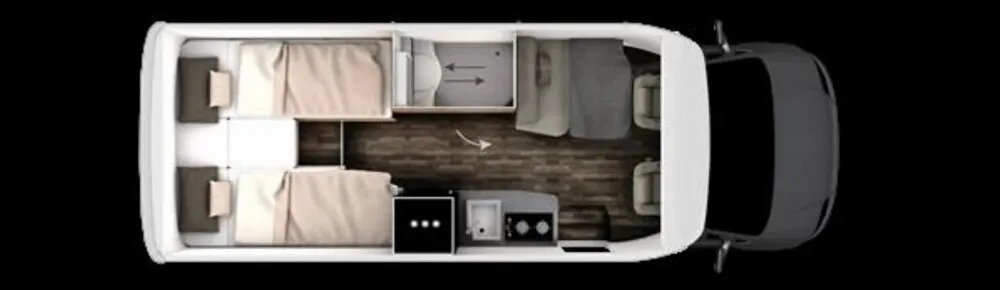 - Neo Licht-Paket (Beleuchtung der Duschsäule, Beleuchtung an der Trittstufe, Lichtband unterhalb der Küchenplatte, Entfall Mini-Heki über Sitzgruppe, dafür Midi-Heki)