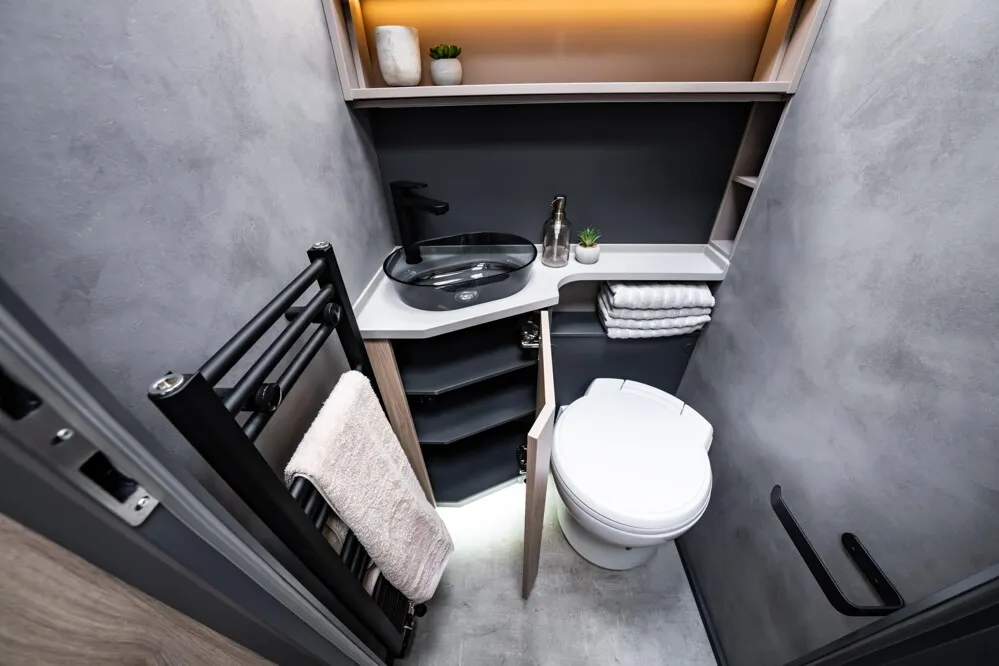 - Cozy - Paket (Besteck-Einsatz, Spannbettlaken (auch für Hubbett falls gewählt), Deko Kissen (1x Muster, 1x Cord, 1x Samt), Küche: 4x Haken für Schienensystem, 2x Metallkörbe inkl. Halterungen, 1x Abroller Küchenrolle)