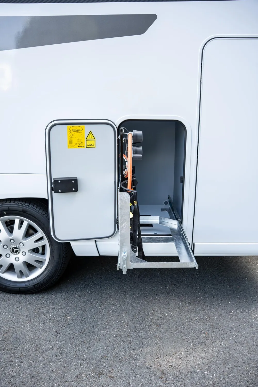 - Aufbautür Deluxe (mit elektr. Zuziehhilfe, Beleuchtung mit Coming Home und Leaving Home Funktion, sowie Fenster)