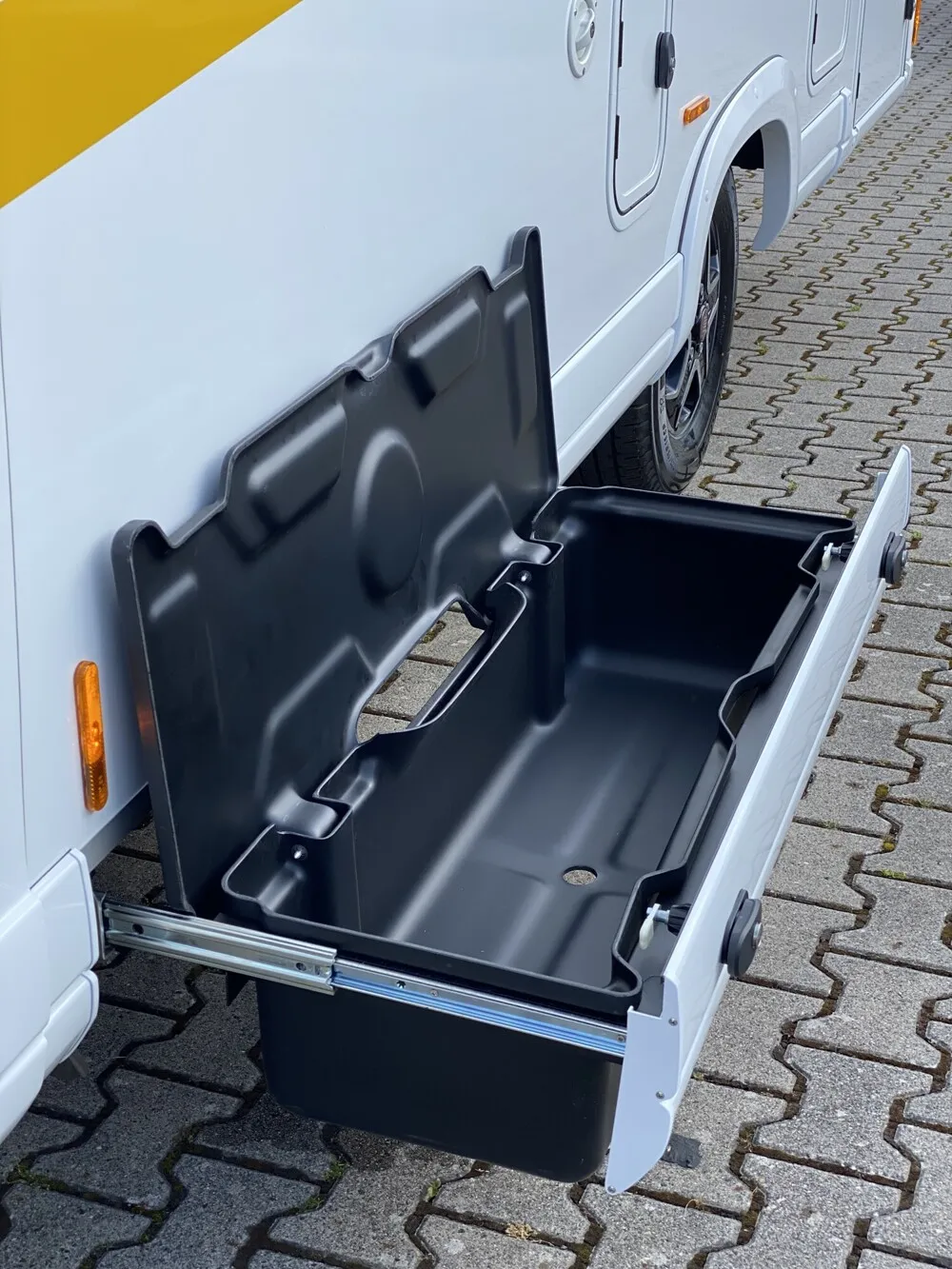 - Stauraumschublade außen (auf linker Fahrzeugseite)
