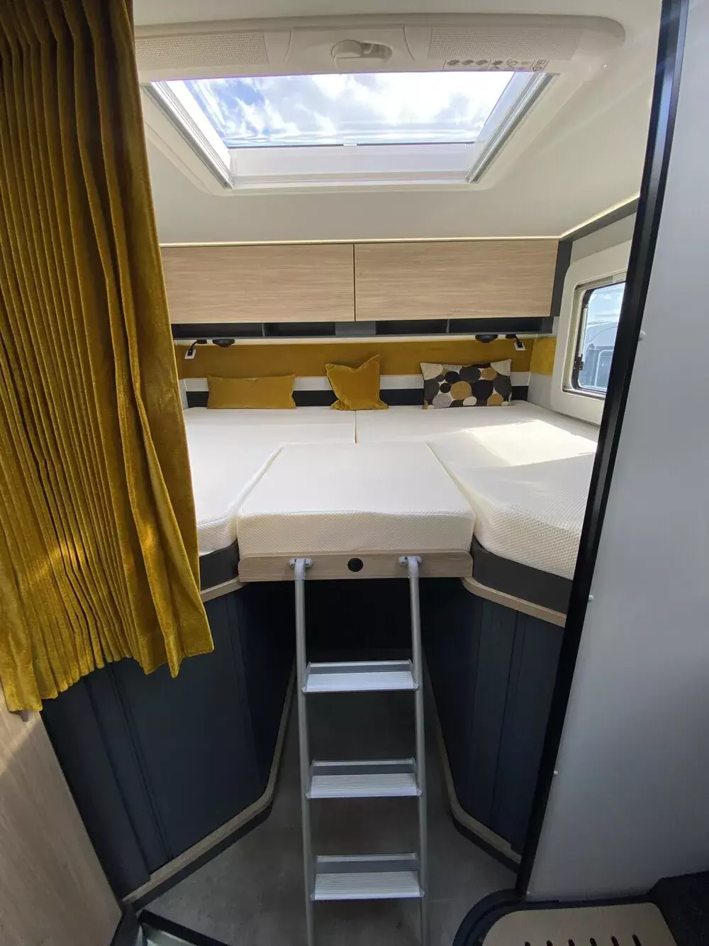 - Hubbett anstelle Bugausbau (Dadurch geringere Stehöhe unter Hubbett von 1,94 m)