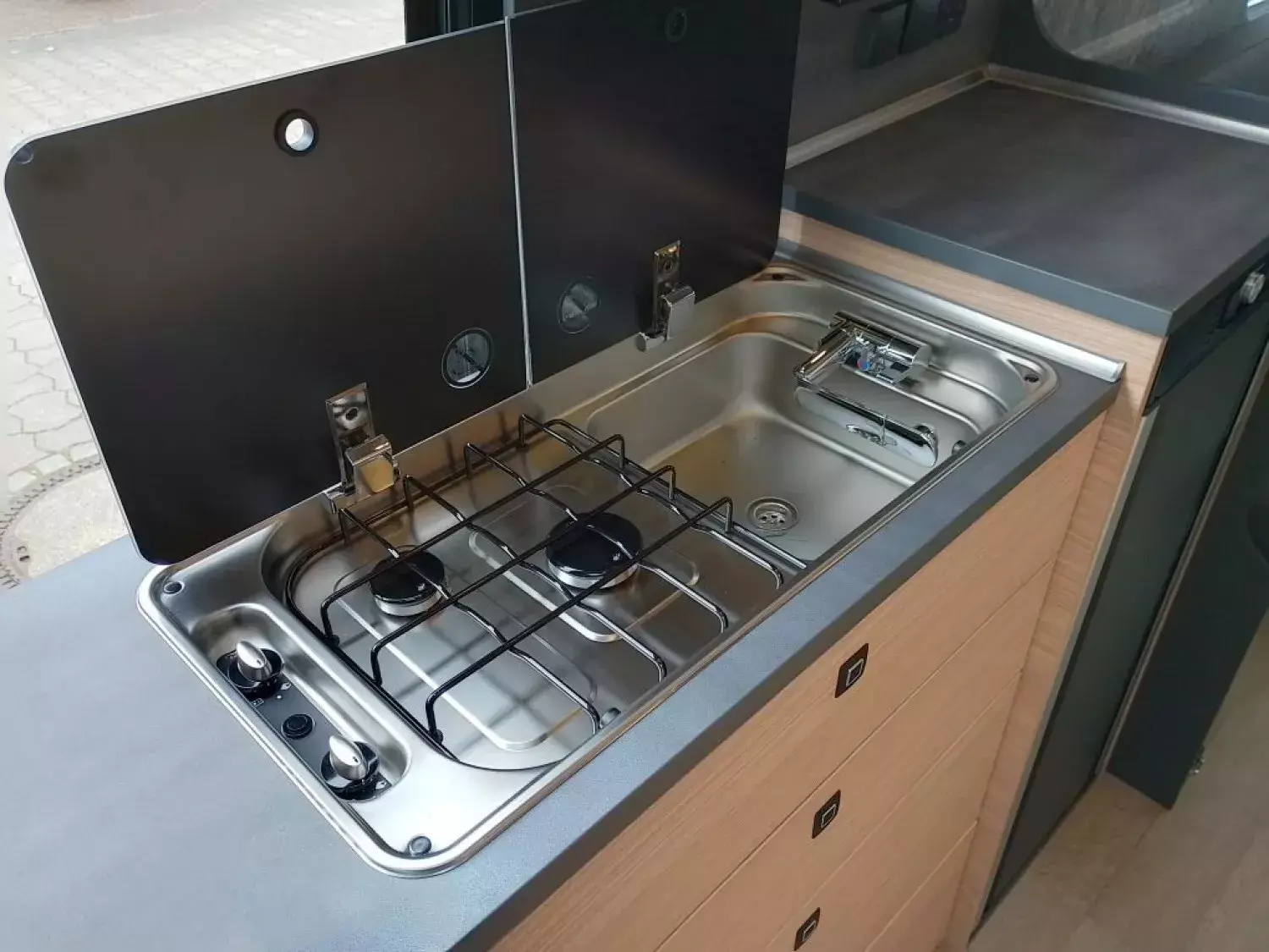 - Außensteckdose 12 V / 230 V, inkl. SAT- / TV-Anschluss