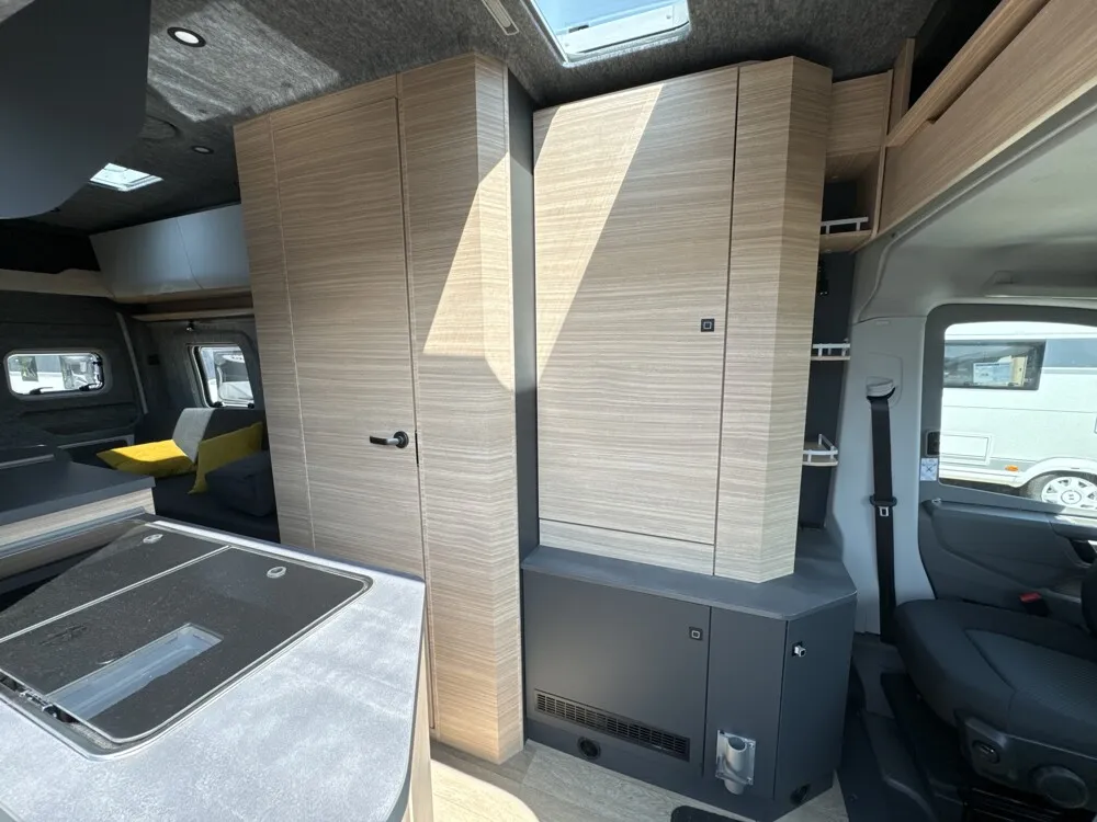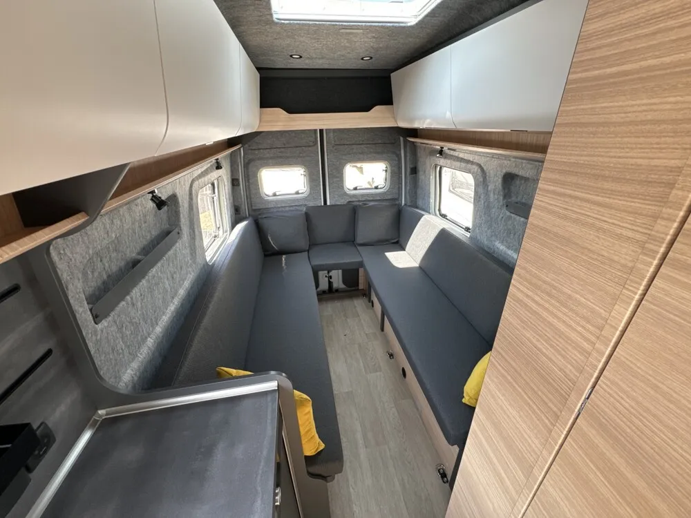 Bei diesem Premium-Kastenwagen trifft Komfort auf Gemütlichkeit. Das Skandinavische Hygge Design zeichnet sich durch perfekt abgestimmte Farben, aufwendig geformte Möbel und seiner Wohlfühlatmosphäre aus.