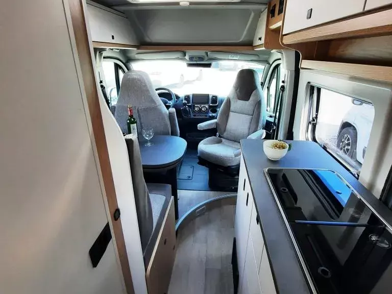 elektrisch anklappbarer Außenspiegel und Parksensoren) , Reifendruckkontrollsystem, Tempomat, Lackierung Expedition Grey, Fahrer- & Beifahrersitz drehbar, Verdunklungssystem Fahrerhaus, Dachmarkise 3,75m, Radio PIONEER, 9" Touchscreen inkl. Apple Car Play /Android Car und Rückfahrkamera, Staufach im Boden, schwellenloser Übergang von Fahrerhaus zum Wohnraum, Bordbatterie Dual AGM, 12V /150 AH, Tandemtauchpumpe, Lesespots im Schlafbereich und Sitzgruppe, Einstiegsstufe elektrisch, Paket "Safety" (inkl. autom. Bremssystem mit Fußgängererkennung, Regen- und Lichtsensor, Spurhalteassistent, Verkehrsschildererkennung, Fahrermüdig-keitserkennung und intelligentem Geschwindigkeitsassistent) Kompressorkühlschrank 90L, 2-Flammen-Gaskocher, Frischwassertank 95L, Abwassertank 90L, Heizung Truma Combi 4, Insektenschutzplissee für Schiebetür, Gasflaschenauszug, passend für 2 x 11-kg-Flaschen u.v.m*