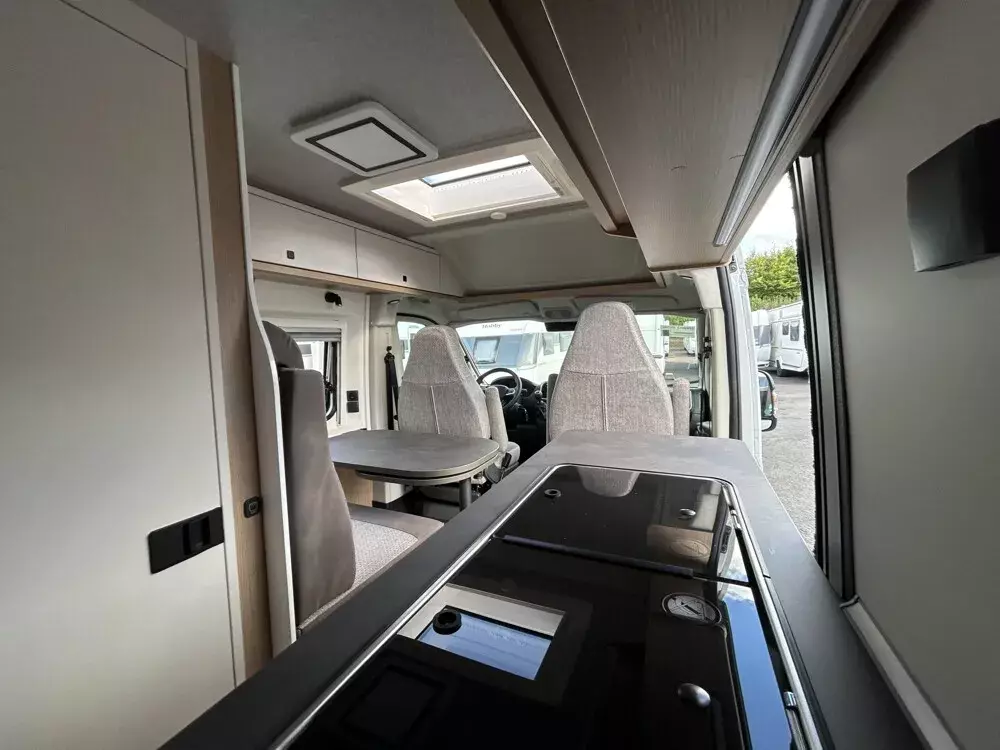 - Fahrer- und Beifahrersitz, dreh- und höhenverstellbar und mit Wohnraumstoff bezogen