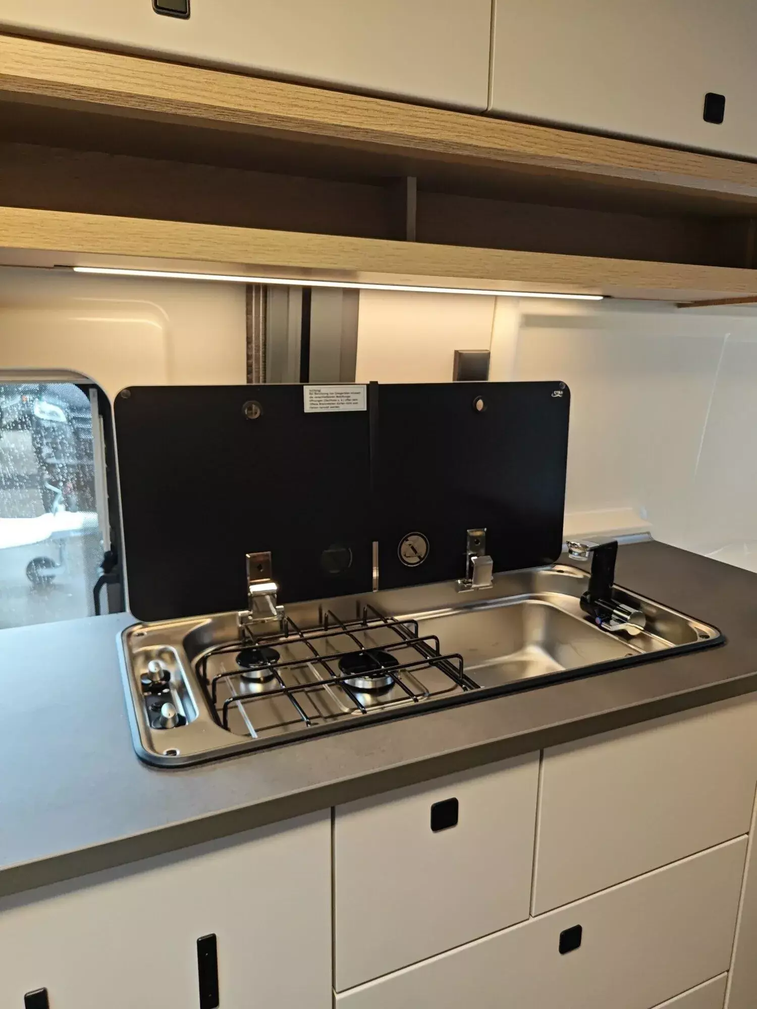 - Vorhängefenster, ausstellbar, doppelt verglast und getönt, im Schlafbereich rechts