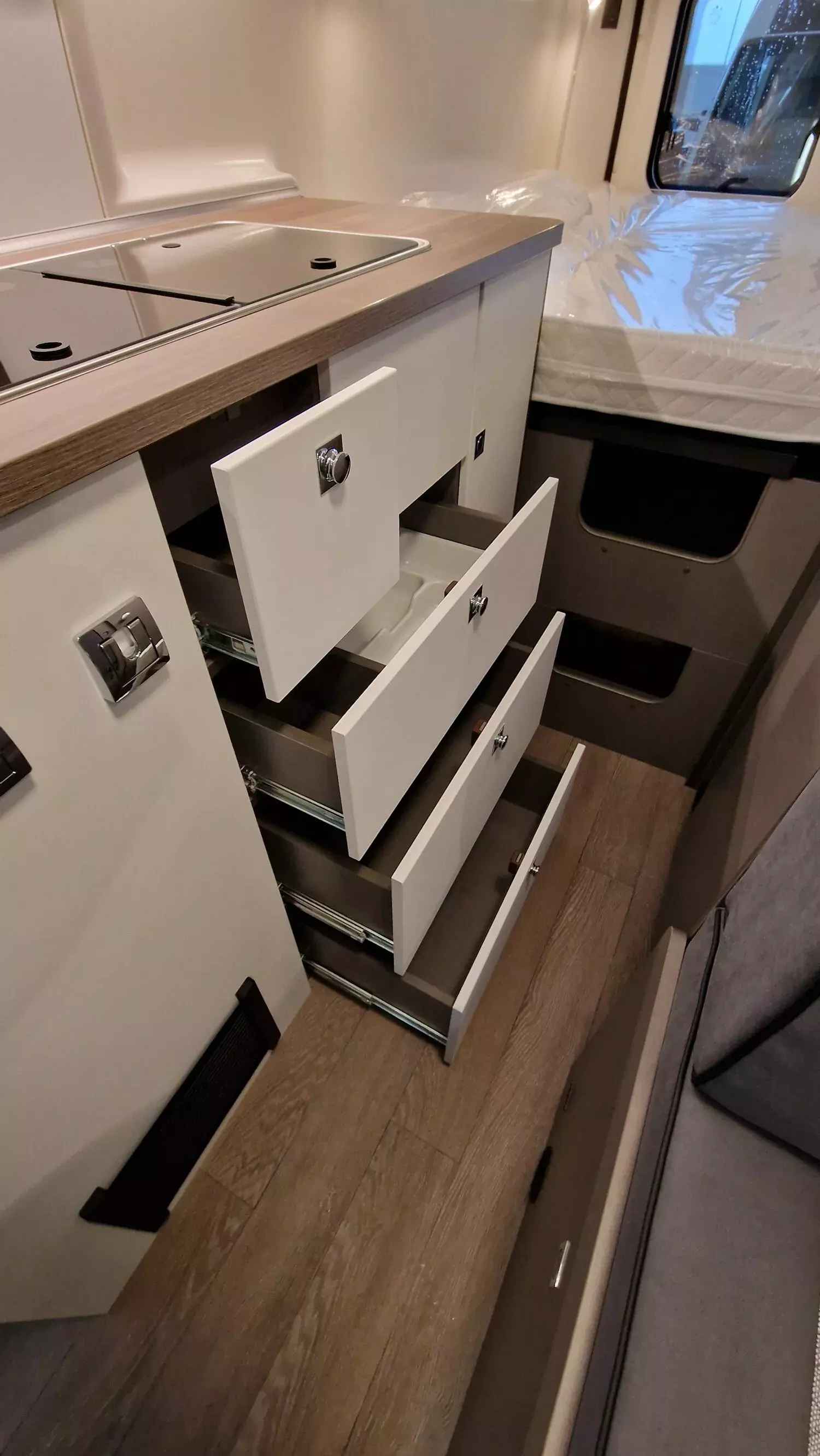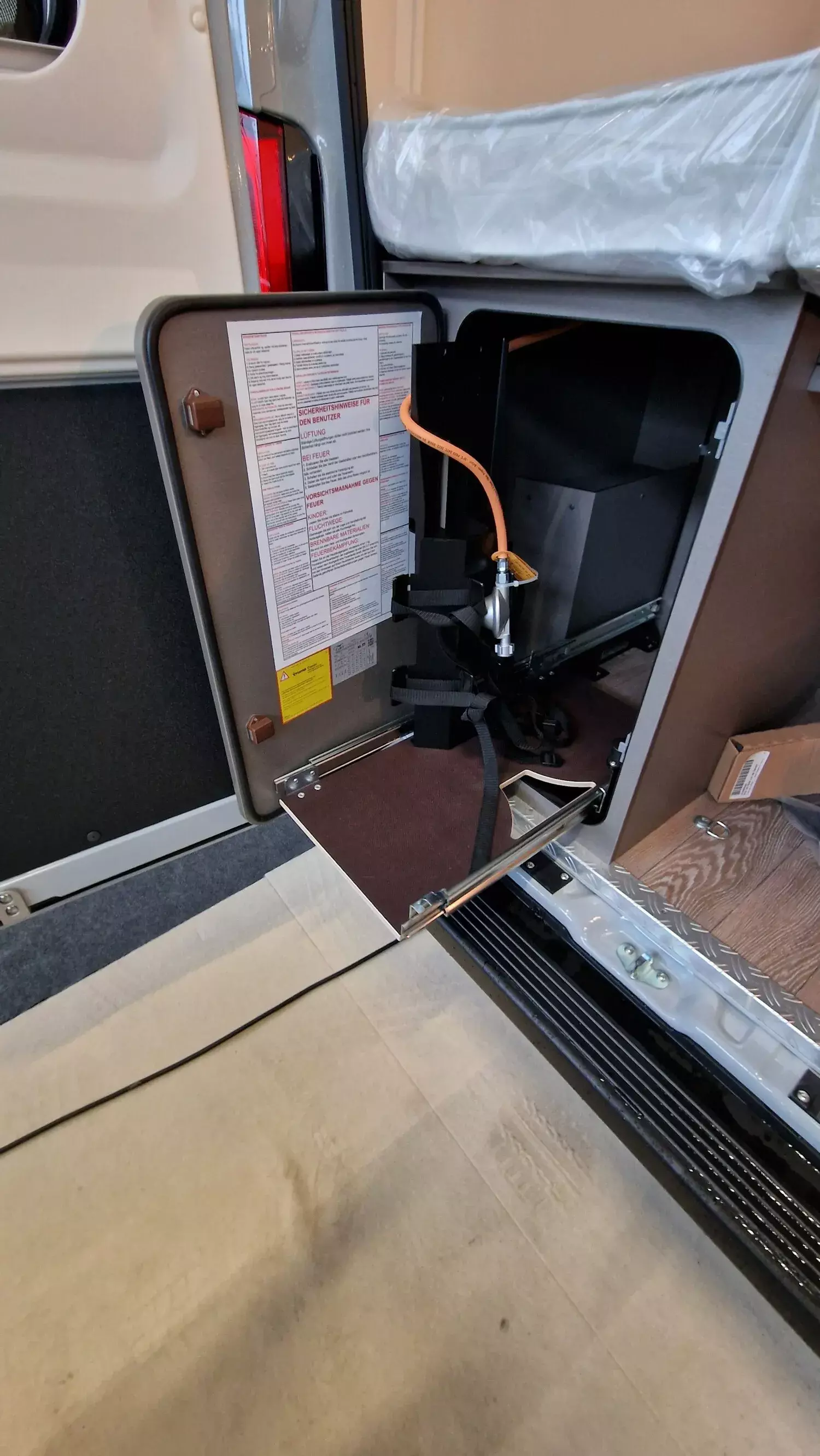 - Abwassertank, 90 Liter, beheizt: Zur Entsorgung von Abwasser und Frostschutz in kalten Temperaturen.