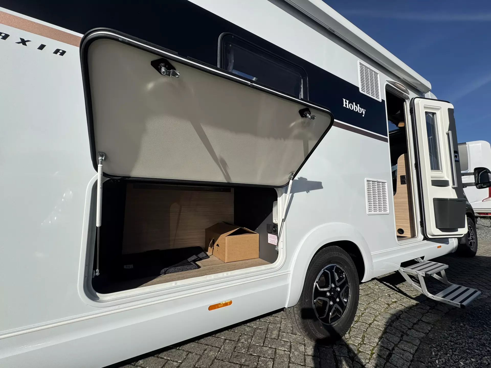 Garagentür / Stauraumklappe auf Fahrerseite mit Gasdruckdämpfern