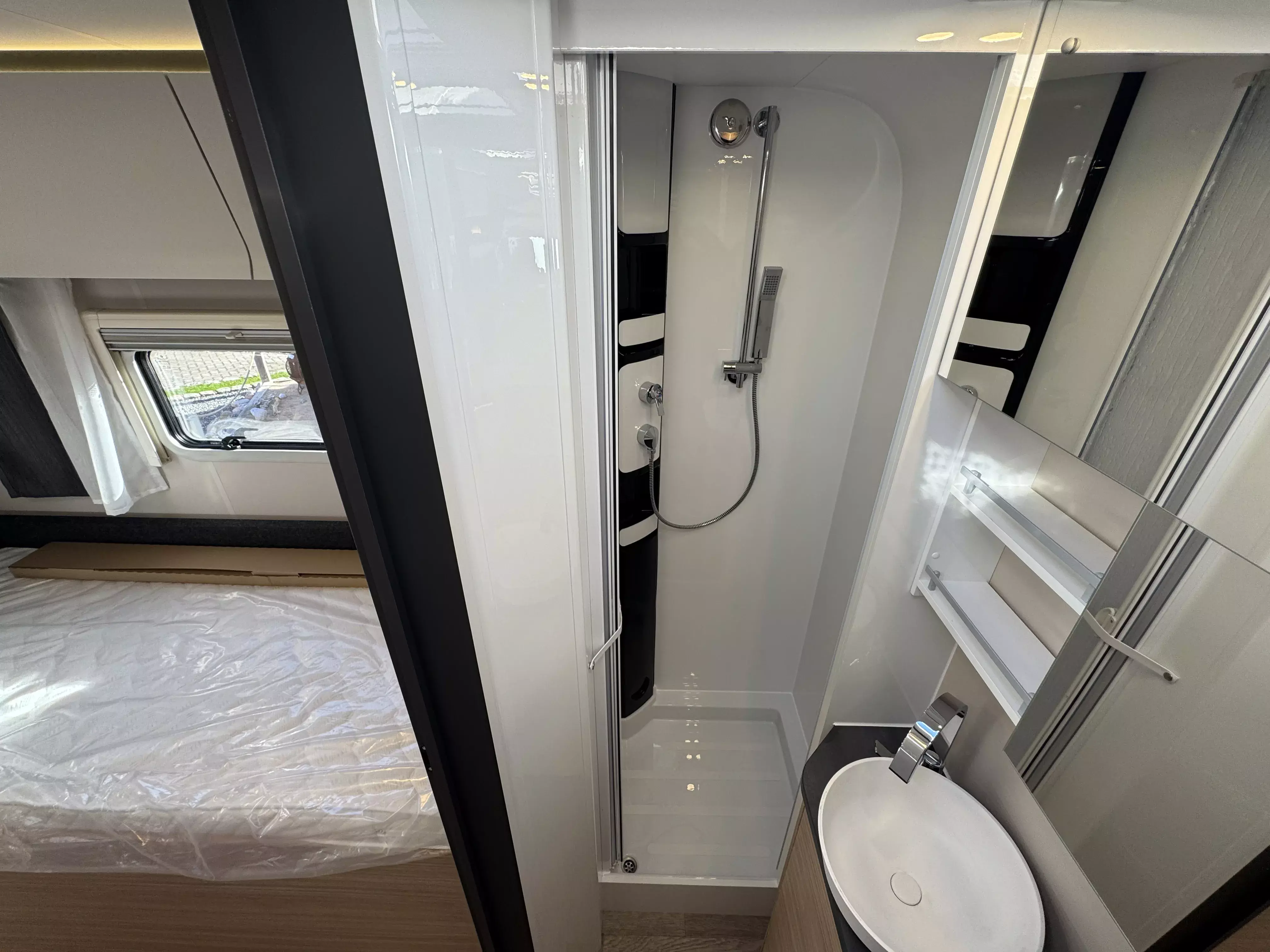 Rahmenfenster, ausstellbar, doppelt verglast und getönt, auf der Beifahrerseite im Schlafbereich