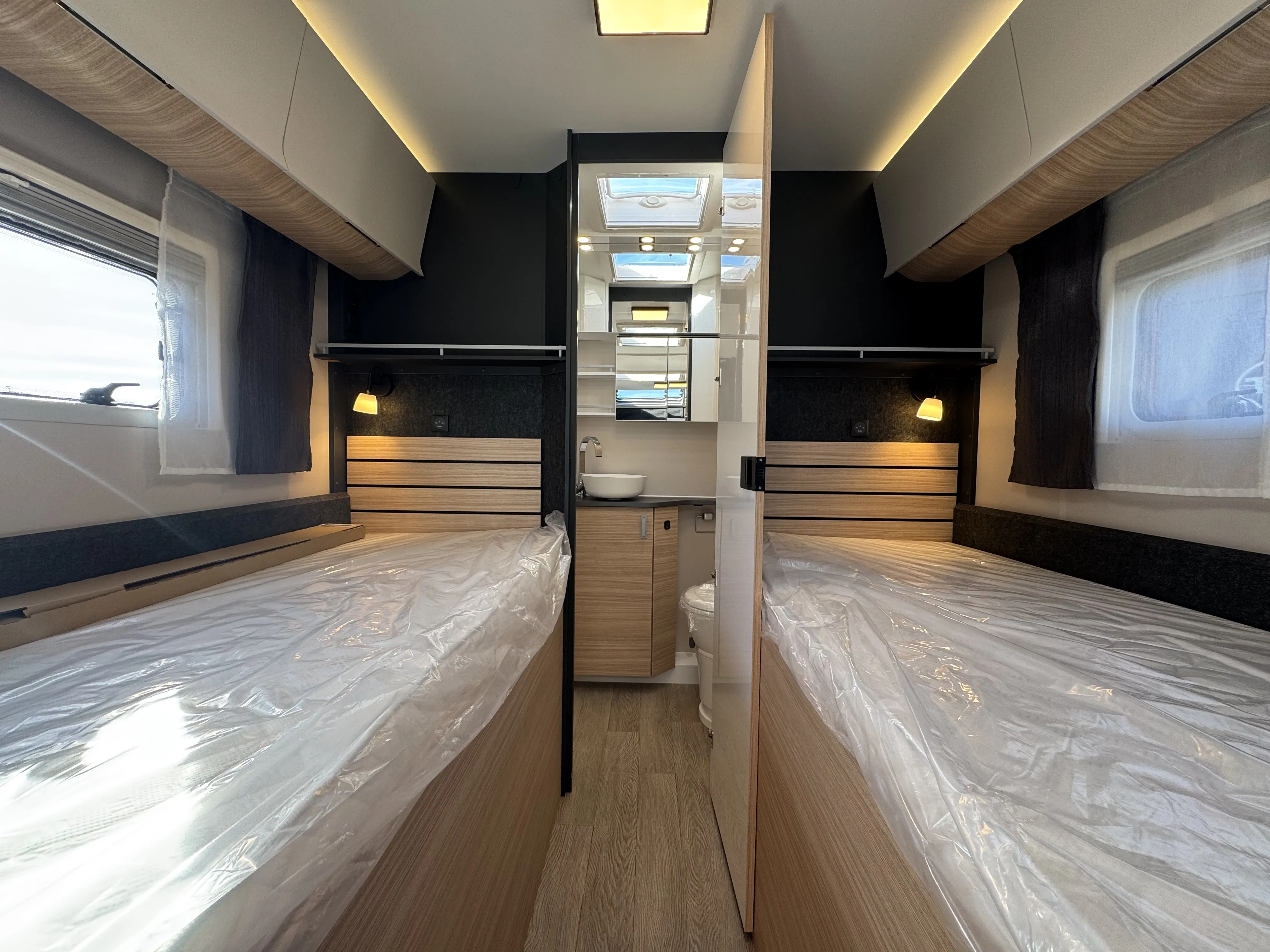 Rahmenfenster, ausstellbar, doppelt verglast und getönt, auf der Beifahrerseite im Schlafbereich