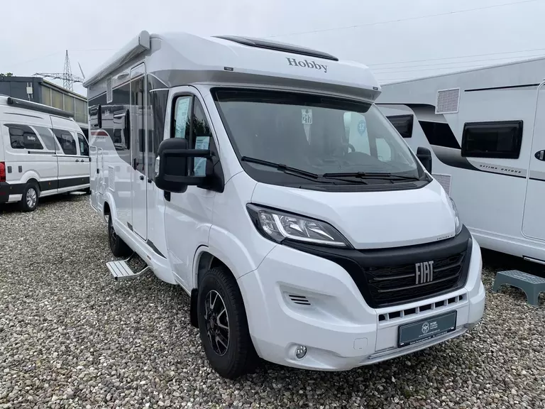- Optima OnTour Edition F Highlights 2024 (Fiat Ducato 2,2 l 140 PS Multijet, Euro 6d Final, Leichtmetallfelgen 16 Zoll Original Fiat, Außenspiegel elektrisch verstell- und beheizbar, Fahrer- und Beifahrerairbag, Tempomat, Radioantenne im Dachbereich integriert, Reifendruckkontrollsystem, Ladebooster25 A, Stoßfänger vorne in Wagenfarbe lackiert, Klimaanlage automatisch mit Pollenfilter im Fahrerhaus, Lenkrad mit Bedienelementen, Nebelscheinwerfer, Lenkrad und Schaltknauf in Leder-Ausführung, Fußmatte im Fahrerhaus, Fahrer- und Beifahrersitz mit Armlehnen -Captain´s Chair-, höhenverstellbar, Fahrer- und Beifahrersitz mit Wohnraumstoff bezogen, Verdunkelungssystem REMIS für Front- und Seitenscheiben im Fahrerhaus, Vorhängefenster ausstellbar, doppelt verglast und getönt, GFK-Boden mit XPS-Wärmedämmung, GFK-Dach für optimalen Hagelschutz, Dachhaube DOMETIC SEITZ Midi-Heki 700 x 500 mm, Insektenschutz für Eingangstür, Gasflaschenauszug passend für 2 x 11 kg-Flaschen, Garagentür auf Fahrerseite, Zurrschienen und -ösen in der Garage, Garderobe im Eingangsbereich, Kleiderschrank mit Innenbeleuchtung, Kühlschrank (AES) DOMETIC 133 Liter mit Doppelanschlag, Absorbertechnik, Lattenrostsystem GOODSIDE (nur bei V65 GE), Bettverbreiterung inkl. Kaltschaummatratze und Leiter, umlaufende Hängeschränke über Bett (nur bei V65 GE), Wäscheleine ausziehbar, Abwassertank 96 Liter isoliert und beheizt, Vorbereitung für Rückfahrkamera, LCD Bedienpanel Truma Combi CP Plus, Vorbereitung für Solaranlage, HOBBY CONNECT-Steuerung für Bordtechnik über Hobby-Bedienpanel und Bluetooth per App, Navigationssystem und Wifi Mediacenter PIONEER mit Touchdisplay, Rückfahrkamera, Stellplatzdatenbank, Apple CarPlay und Android Auto, Vorbereitung für SAT-Anlage, Anbaumarkise Thule Omnistor Breite 400)
