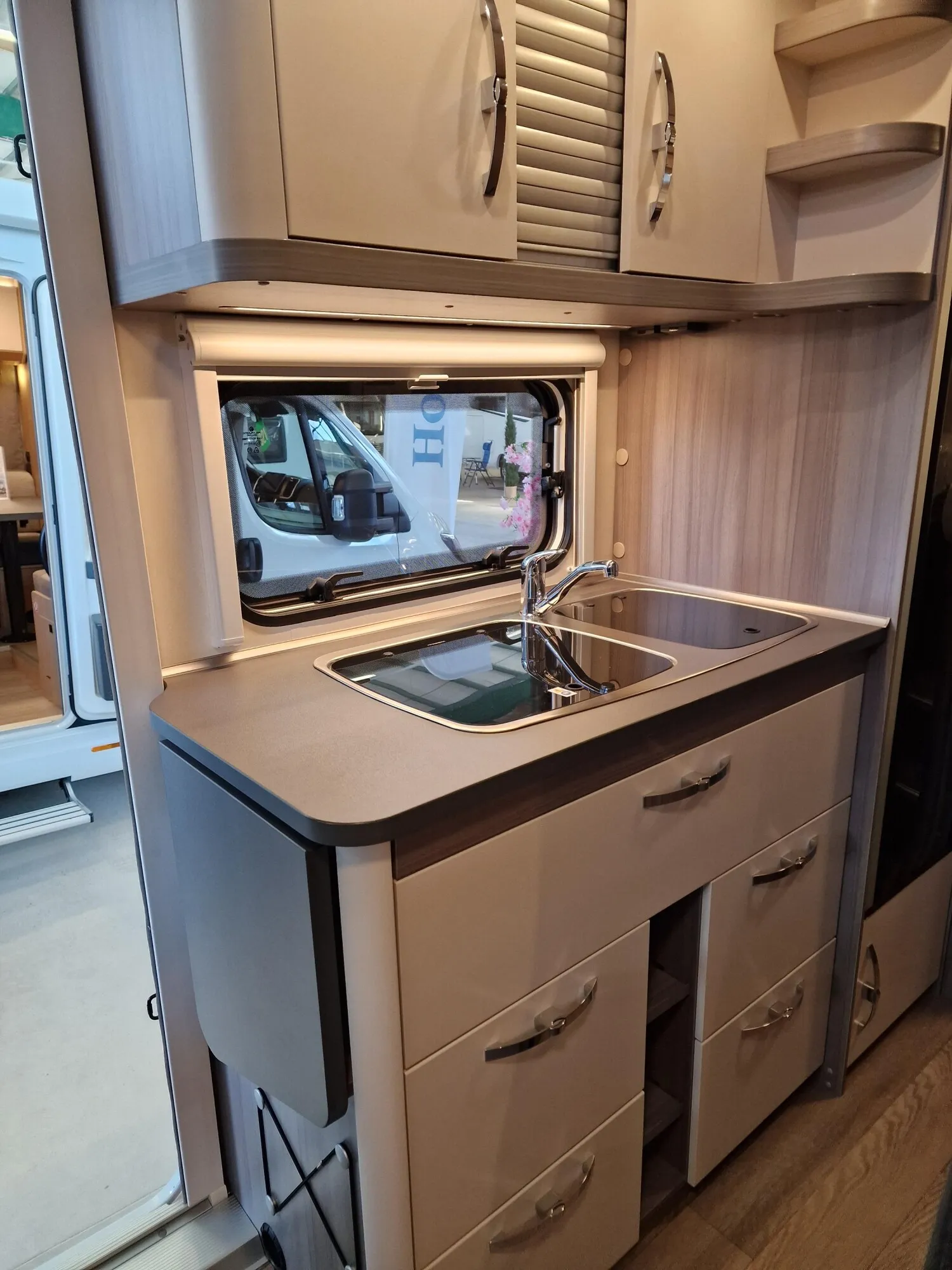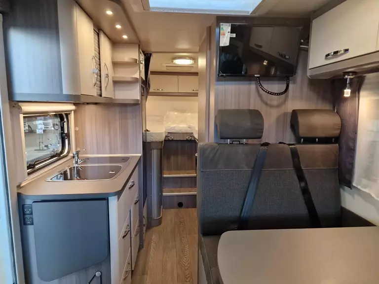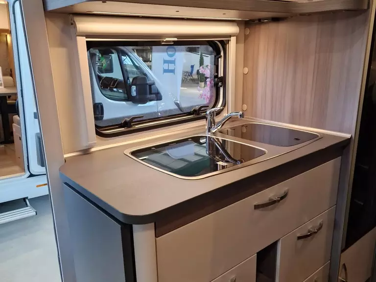 - Vorhängefenster, ausstellbar, doppelt verglast und getönt, auf der Fahrerseite im Schlafbereich, 840 x 260 mm: Für eine angenehme Belüftung und zusätzliche Helligkeit im Schlafbereich.