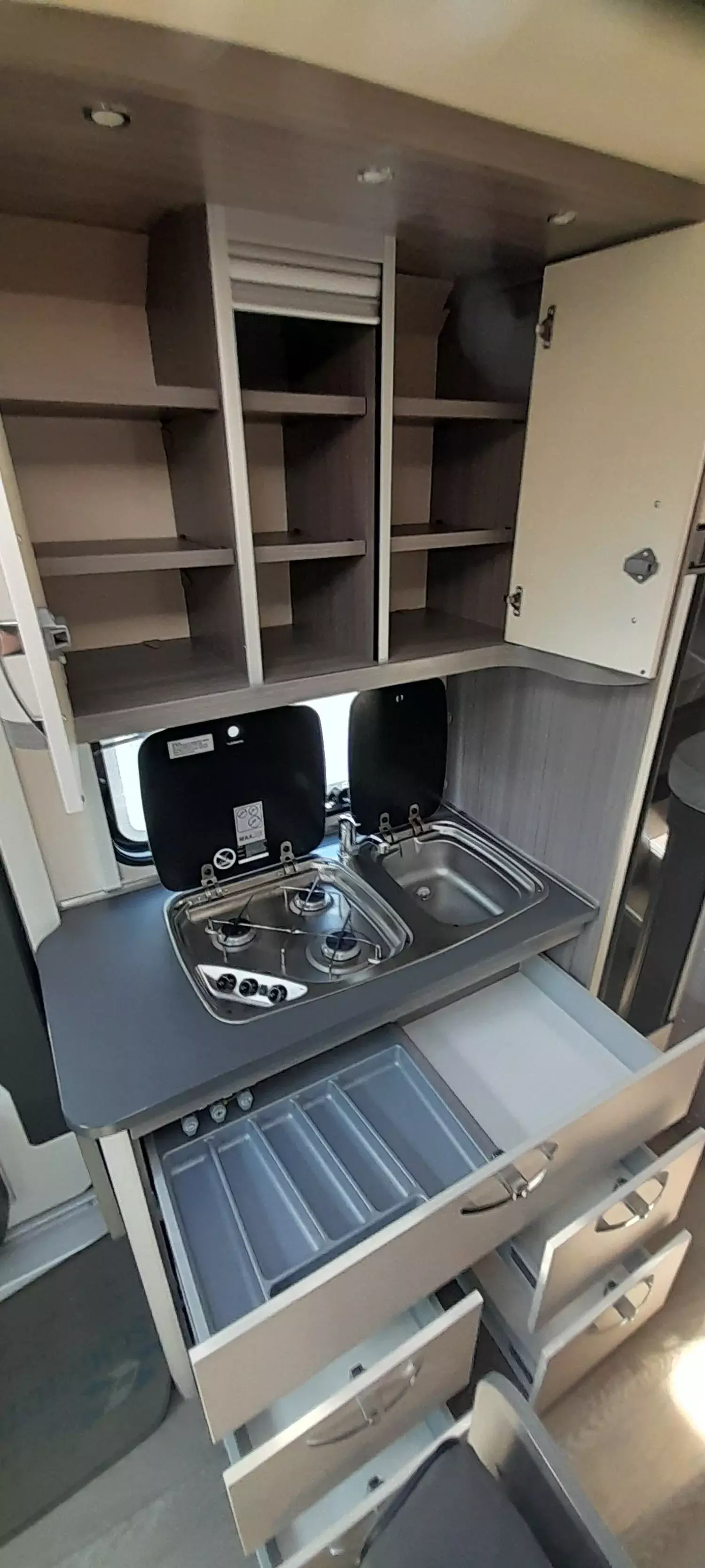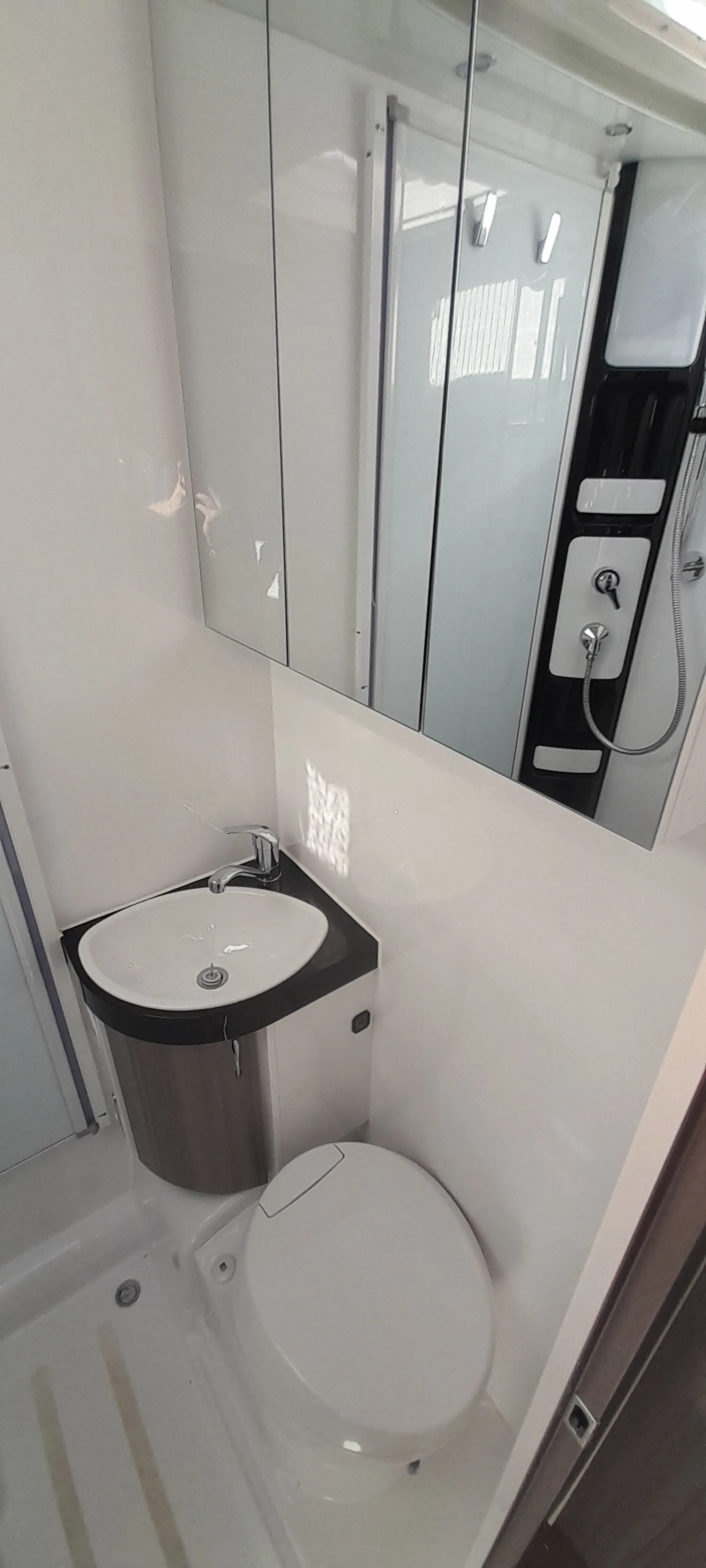 - Vorhängefenster, ausstellbar, doppelt verglast und getönt, auf der Fahrerseite im Schlafbereich, 840 x 260 mm