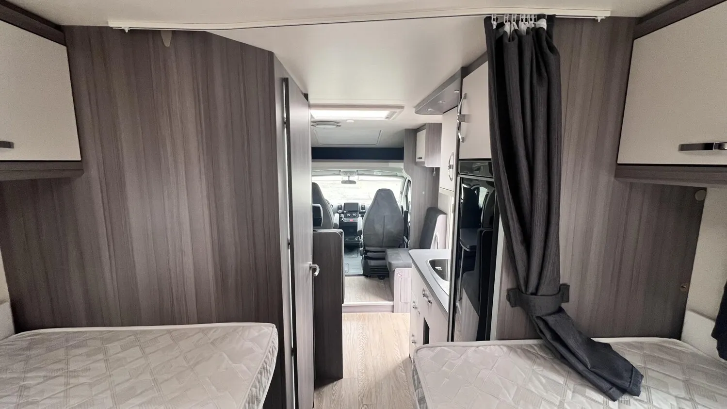 - Fahrer- und Beifahrersitz mit Wohnraumstoff bezogen