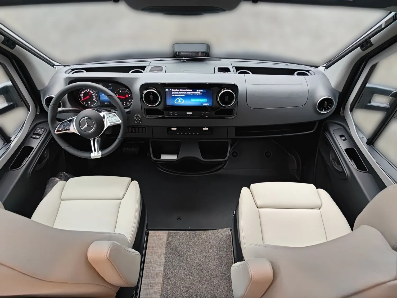 - Winterpaket (Sitzheizung und Lordosenstütze für Mercedes Benz Originalsitze, Wet Wiper System (Scheibenwischer mit integ. Spritzdüse), Lenkradheizung, Wärmeisolierendes Fahrerhaus)