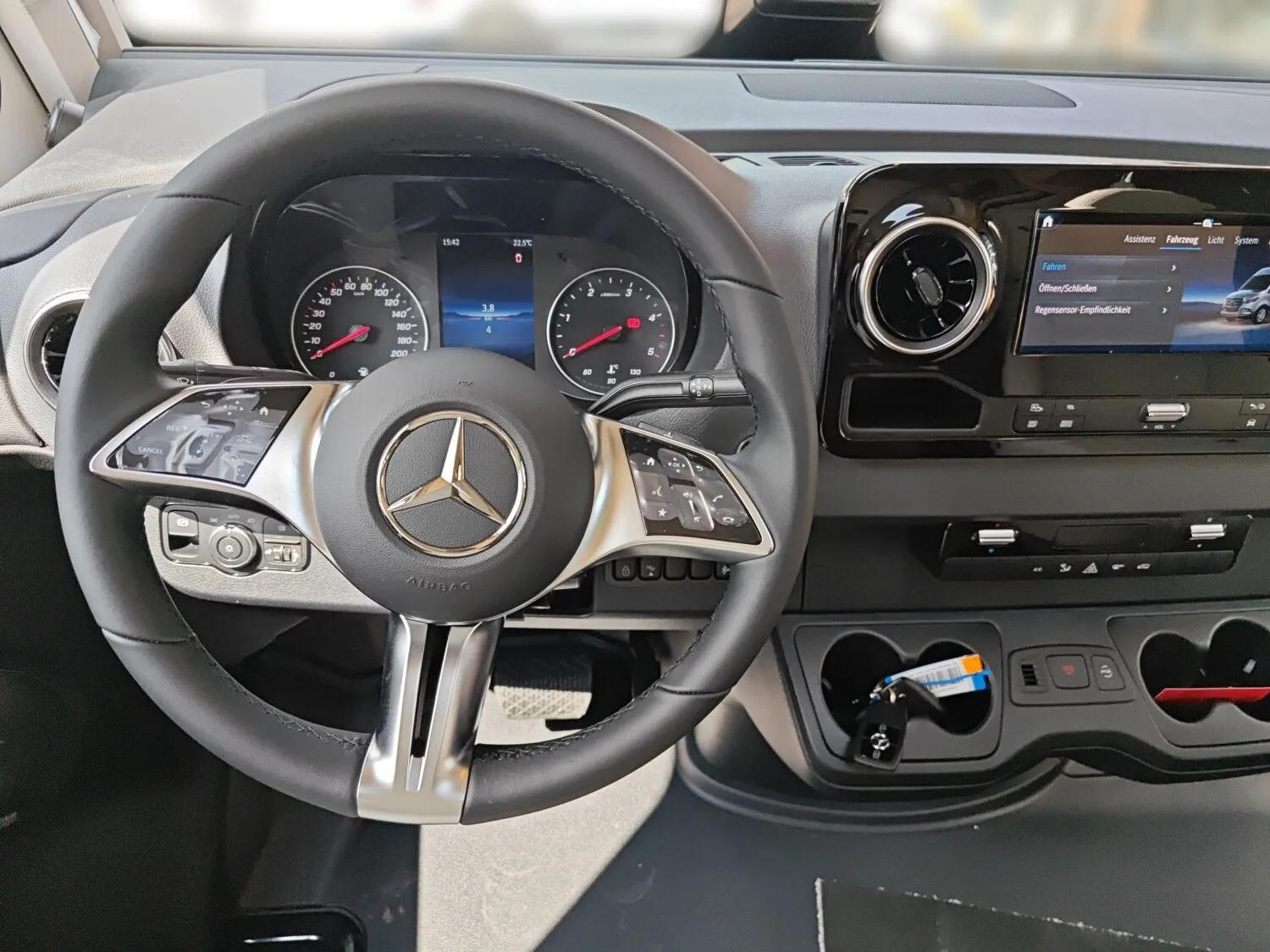 - Ausstattungslinie Plus (Automatikgetriebe 9G-TRONIC inkl. Hold-Funktion, Verstärkte Vorderachse, Akustik-Paket Mercedes-Benz, Elektrische Parkbremse, Halbautomatische Klimaanlage TEMPMATIC, Kombiinstrument mit Farbdisplay Mercedes-Benz, Lederlenkrad (bei Automatikgetriebe), Multifunktionslenkrad, Tempomat inkl. Lenkrad-Multifunktionstasten, Aktiver Abstands-Assistent DISTRONIC PLUS inkl. Lenkrad-Multifunktionstasten, Aktiver Spurhalte-Assistent, Aufmerksamkeits-Assistent, Regensensor, Verkehrszeichen-Assistent, DAB Radio, Navigation & Smartphone-Integration für MBUX-System, MBUX 10,25" Multimediasystem mit Rückfahrkamera, Sprachsteuerung und Touchscreen)