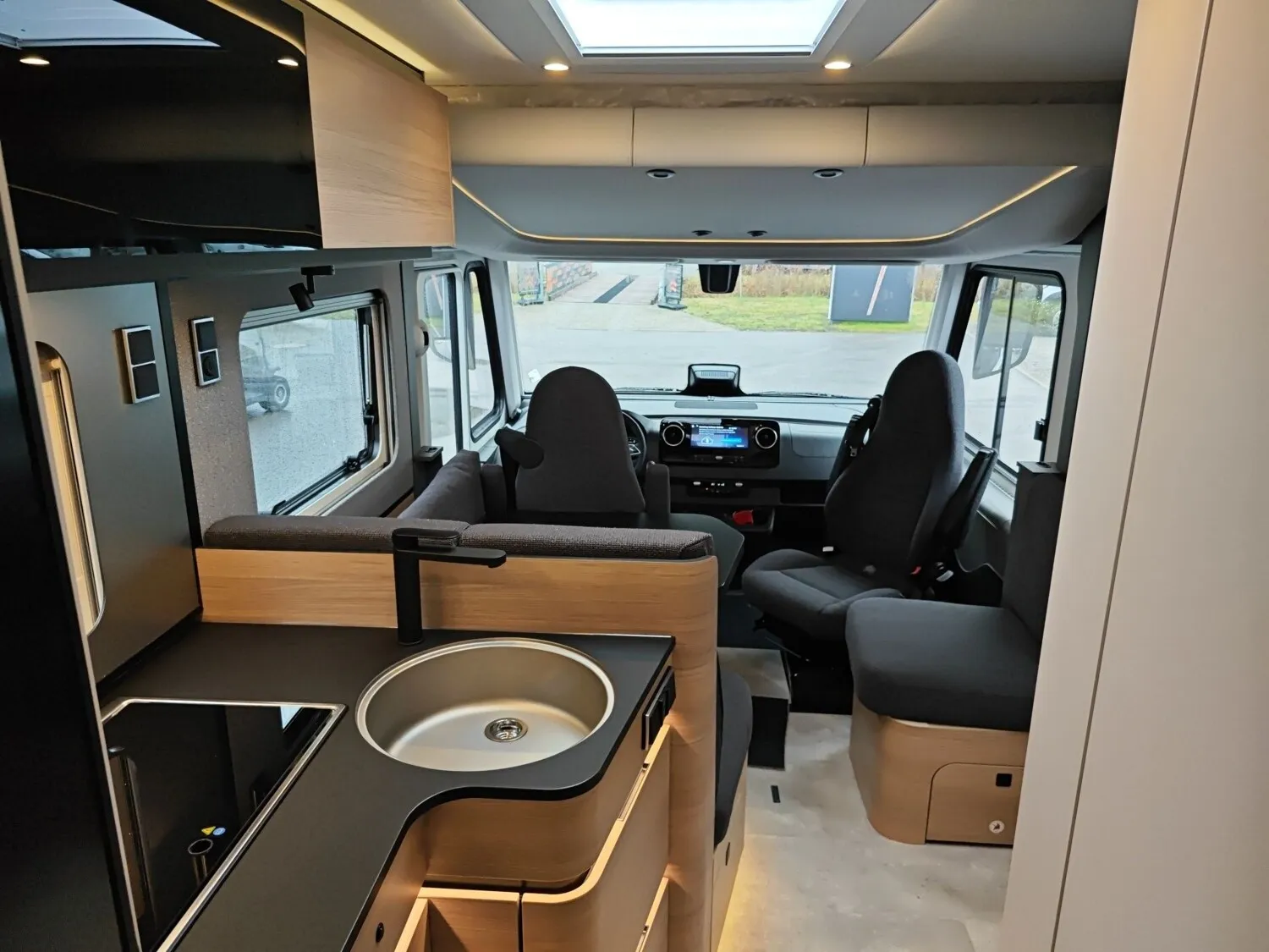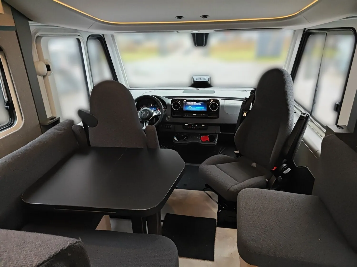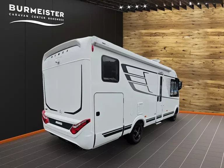 - Ausstattungslinie Premium (Automatikgetriebe 9G-TRONIC inkl. Hold-Funktion, HYMER Premium Voll-LED Scheinwerfer, Verstärkte Vorderachse, Ablage für Smartphones inkl. wireless charging Funktion und Ladestandsanzeige, Akustik-Paket Mercedes-Benz, Elektrische Parkbremse, Kombiinstrument mit Farbdisplay Mercedes-Benz, Ladepaket Instrumententafel mit 2 x USB-C Stecker 5V / 1x 12V-Steckdose, Lederlenkrad (bei Automatikgetriebe), Multifunktionslenkrad, Tempomat inkl. Lenkrad-Multifunktionstasten, Vollautomatische Klimaanlage THERMOTRONIC, Aktiver Abstands-Assistent DISTRONIC PLUS inkl. Lenkrad-Multifunktionstasten, Aktiver Spurhalte-Assistent, Aufmerksamkeits-Assistent, Regensensor, Verkehrszeichen-Assistent, DAB Radio, Navigation & Smartphone-Integration für MBUX-System, MBUX 10,25" Multimediasystem mit Rückfahrkamera, Sprachsteuerung und Touchscreen)