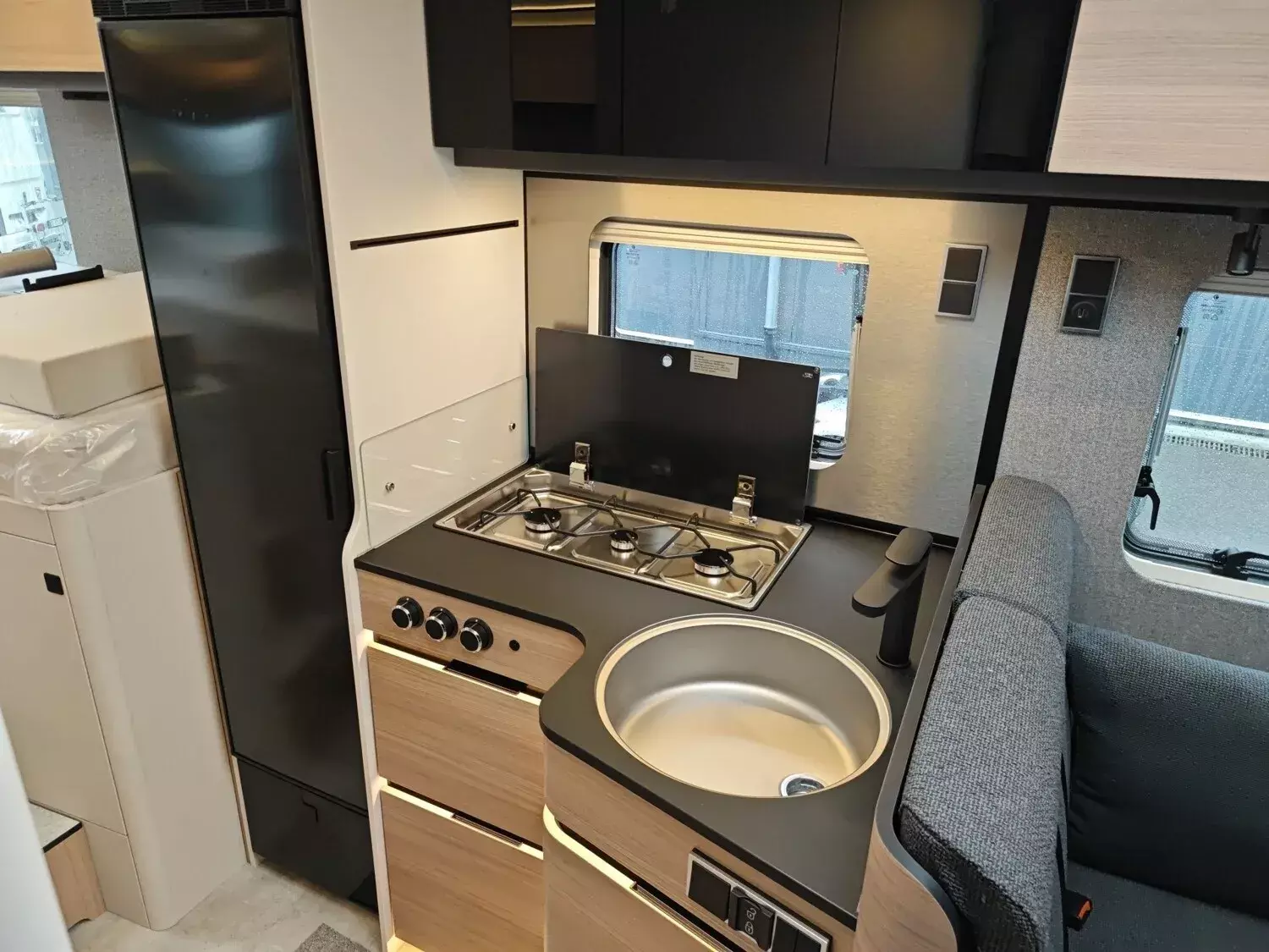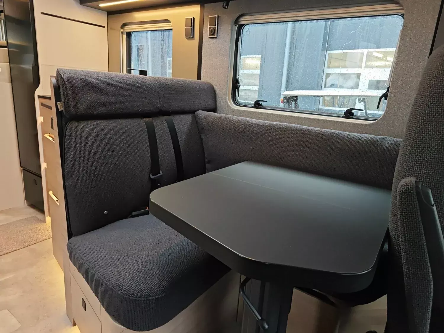 - Wohnkomfort-Paket (Filzverkleidung in Heckgarage, Spannbettlaken nach Maß für Heckbetten individuell an Matratzen angepasst, 2 Kissen mit Bezug, Ambient-Light-System: Mehr-Ebenen Lichtsystem mit dynamischer und individueller Steuerung der Beleuchtung (inkl. Lichttemperatur) sowie stimmungsvoller Sockelbeleuchtung, 4 x 230 V / 2 x Doppel-USB Zusatzsteckdosen)