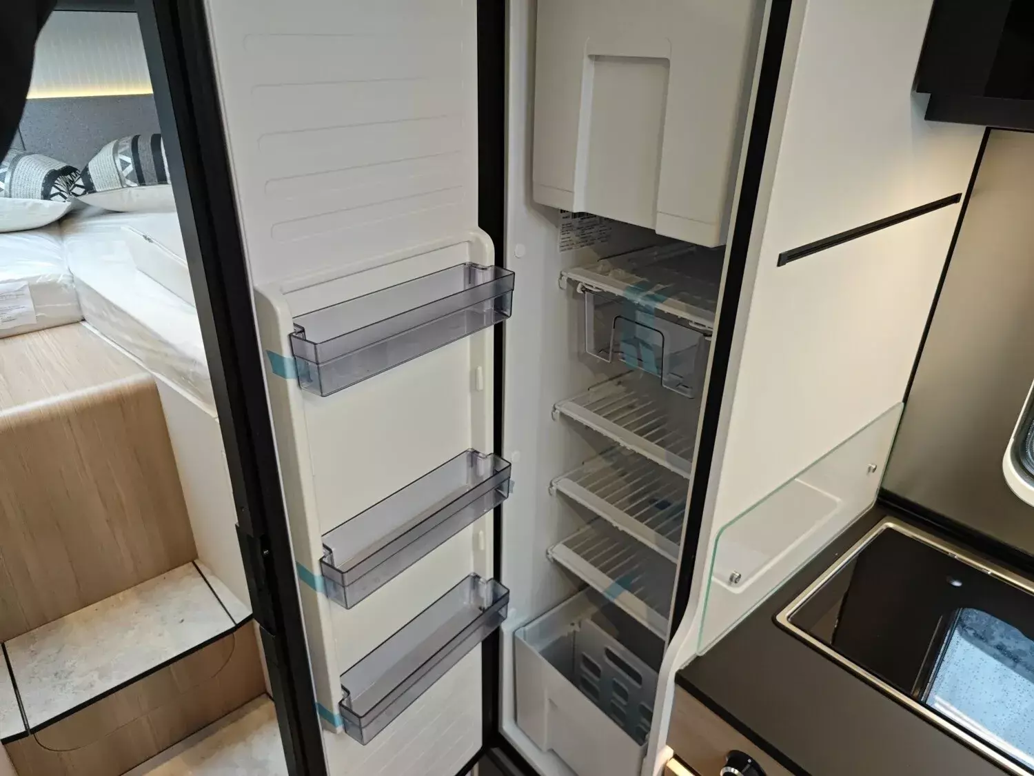 - Komfort-Eingangstür mit Fenster, Verdunkelungsrollo, integriertem Mülleimer und 2-fach Verriegelung