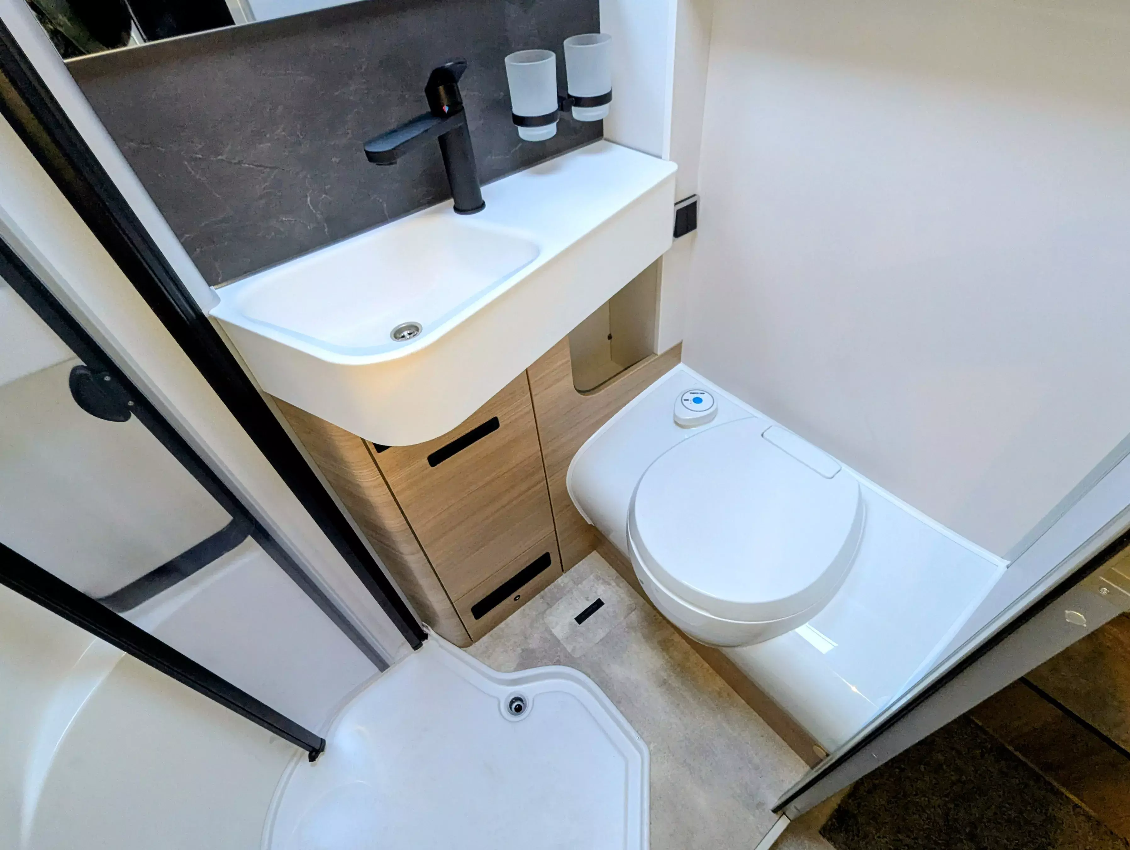 - Komfort-Eingangstür mit Fenster, Verdunkelungsrollo, integriertem Mülleimer und 2-fach Verriegelung