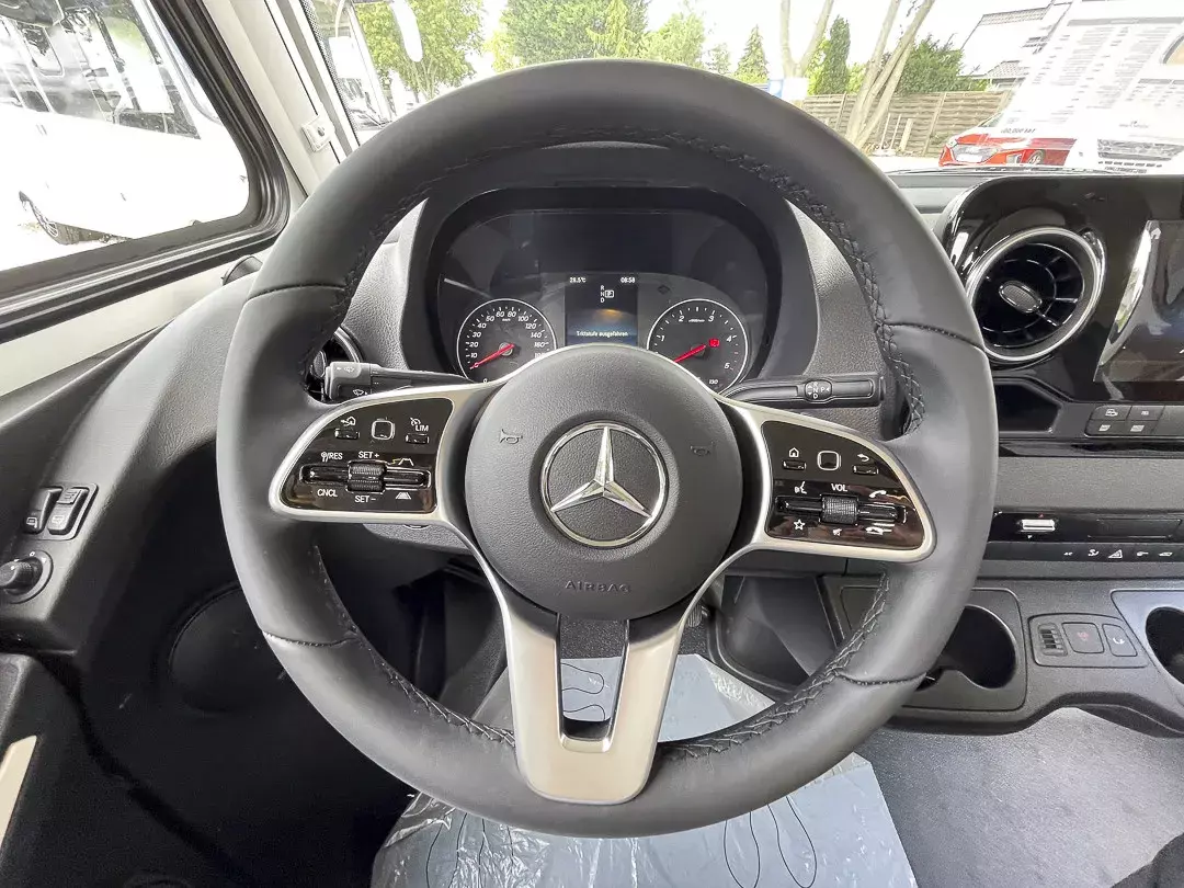 * Für zusätzliche Komfortmomente sorgen Klimaautomatik, Sitzheizung, TV-System, Solaranlage und Klimaanlage im Wohnraum. Auf längeren Reisen unterstützen moderne Assistenzsysteme wie DISTRONIC PLUS, Notbremsassistent, Verkehrszeichenerkennung und die Rückfahrkamera – ideal für entspannte, sichere Fahrten.