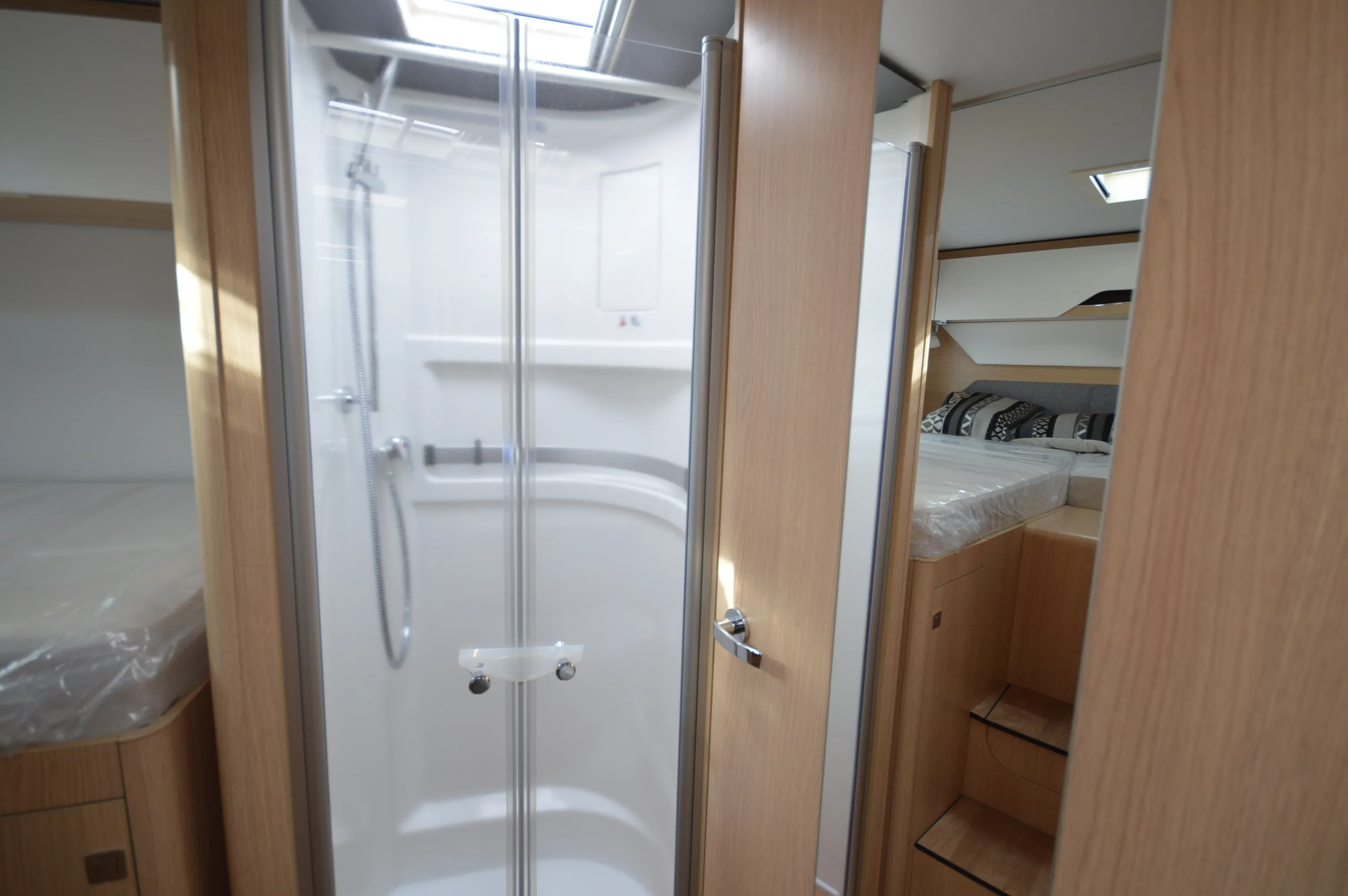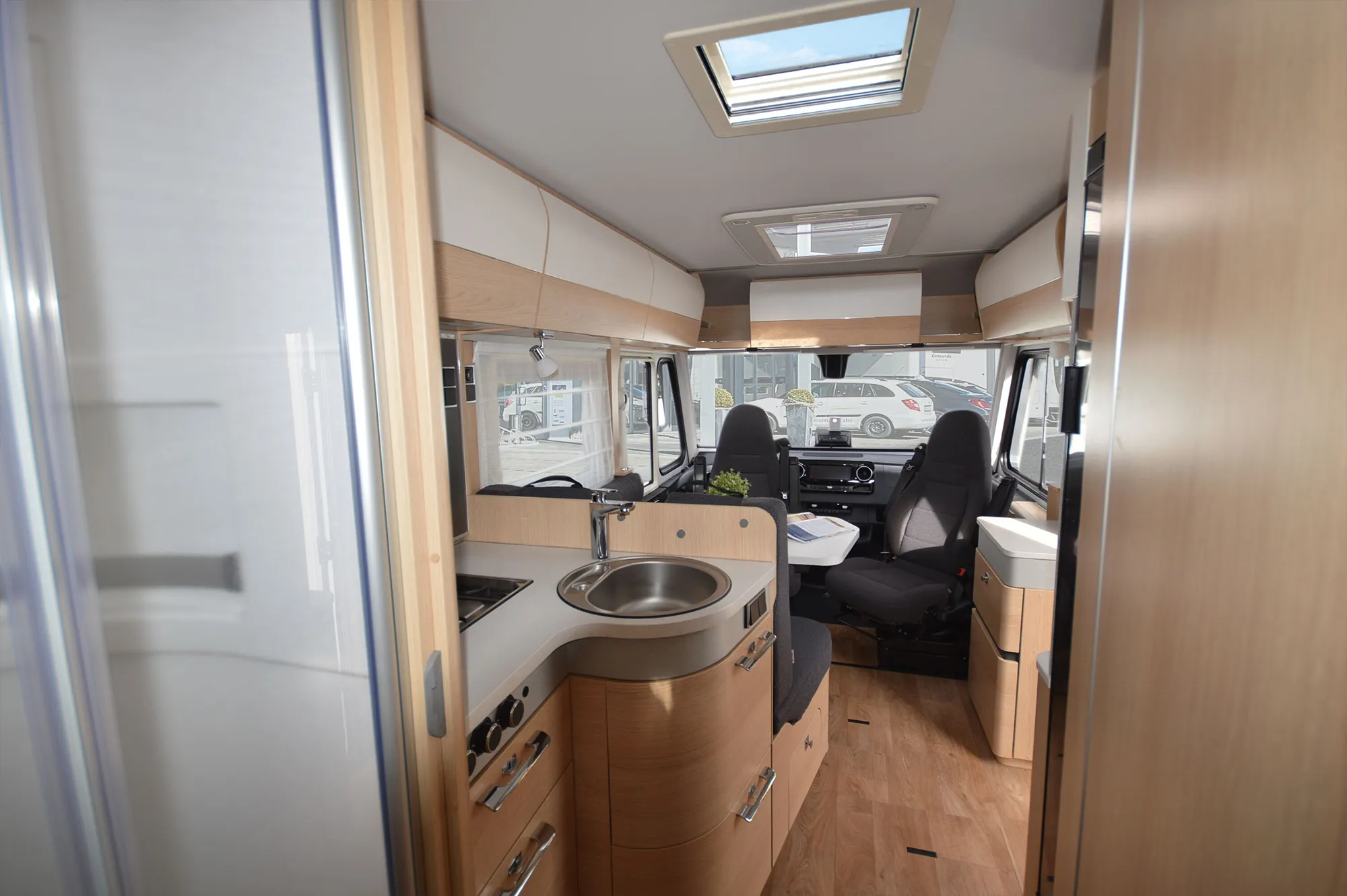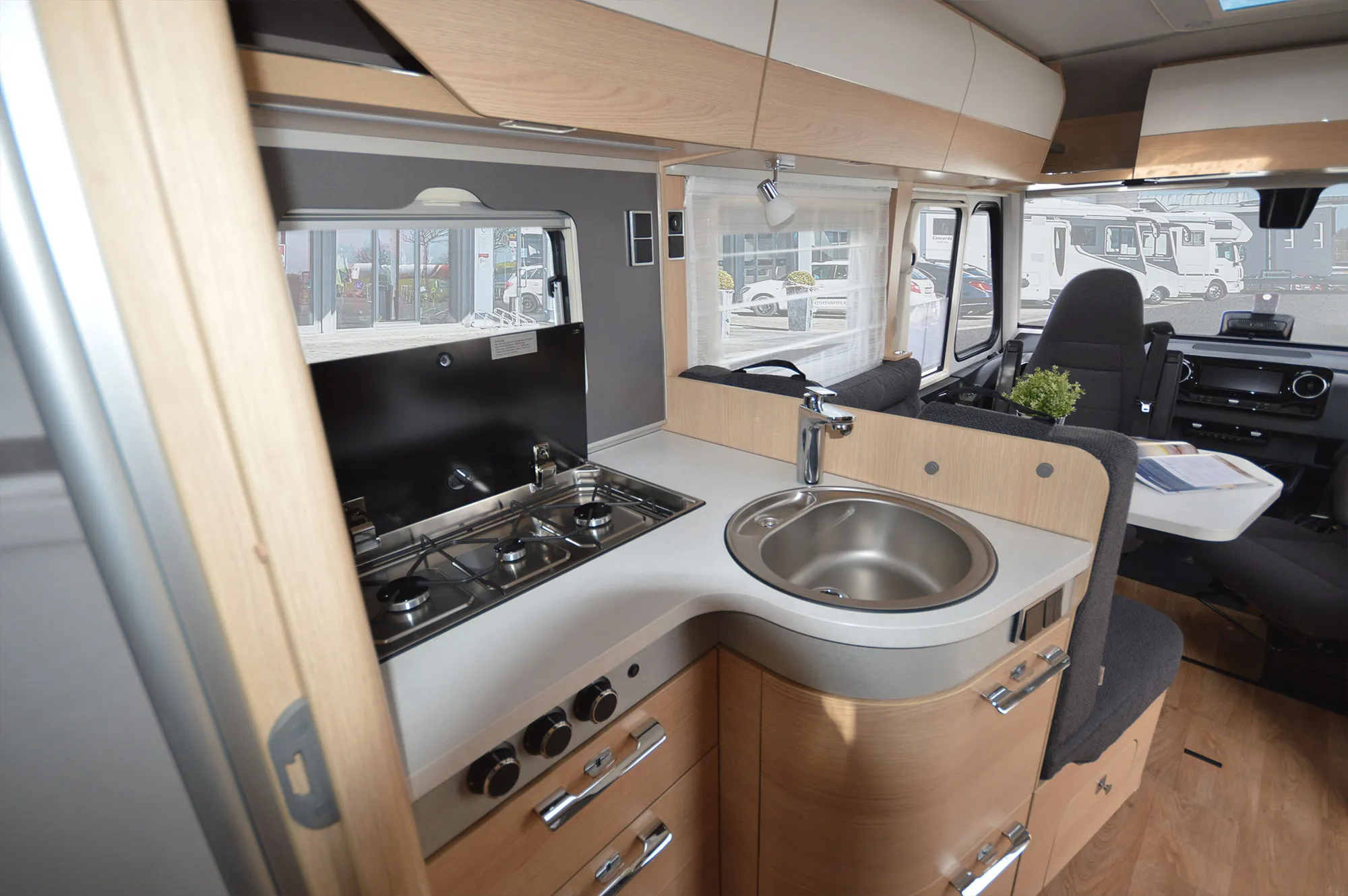 -Wohnkomfort-Paket (Einlegeboden mit Holzoberfläche, Spannbettlaken nach Maß für Heckbetten individuell an Matratzen angepasst, 4 Kissen mit Bezug, Ambient-Light-System: Mehr-Ebenen Lichtsystem mit dynamischer und individueller Steuerung der Beleuchtung (inkl. Lichttemperatur) sowie stimmungsvoller Sockelbeleuchtung, 4 x 230 V / 1 x 12 V / 1 x Doppel-USB Zusatzsteckdosen (inkl. Küchenwand-Verkleidung))