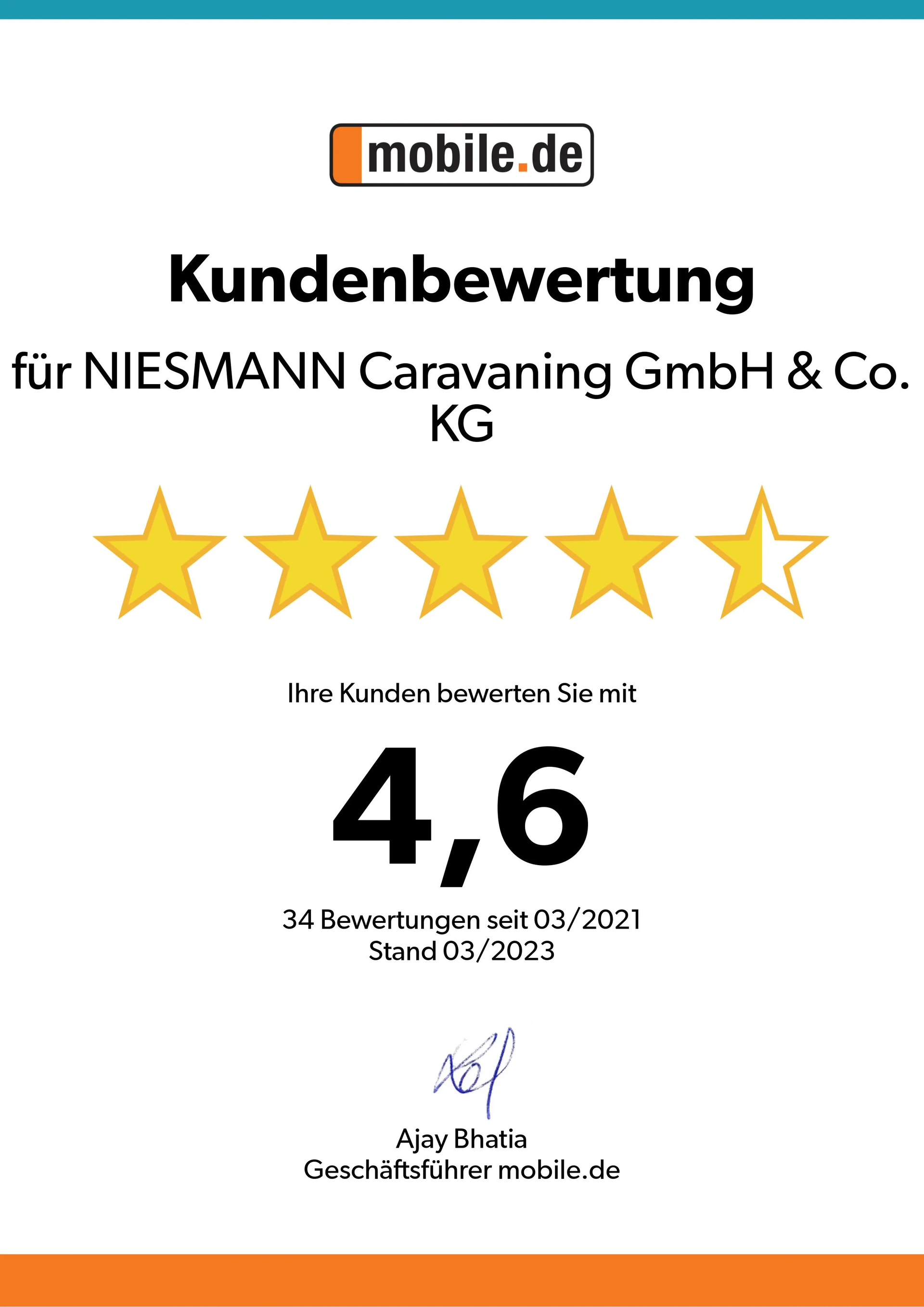 Wir bieten an: Jung-gebrauchtes Reisemobil, Scheckheft-gepflegt nach Werksvorgabe und mit Dichtigkeitsgarantie. Mehrwertsteuer ausweisbar. Ehemaliger Neupreis 168.345 EUR.