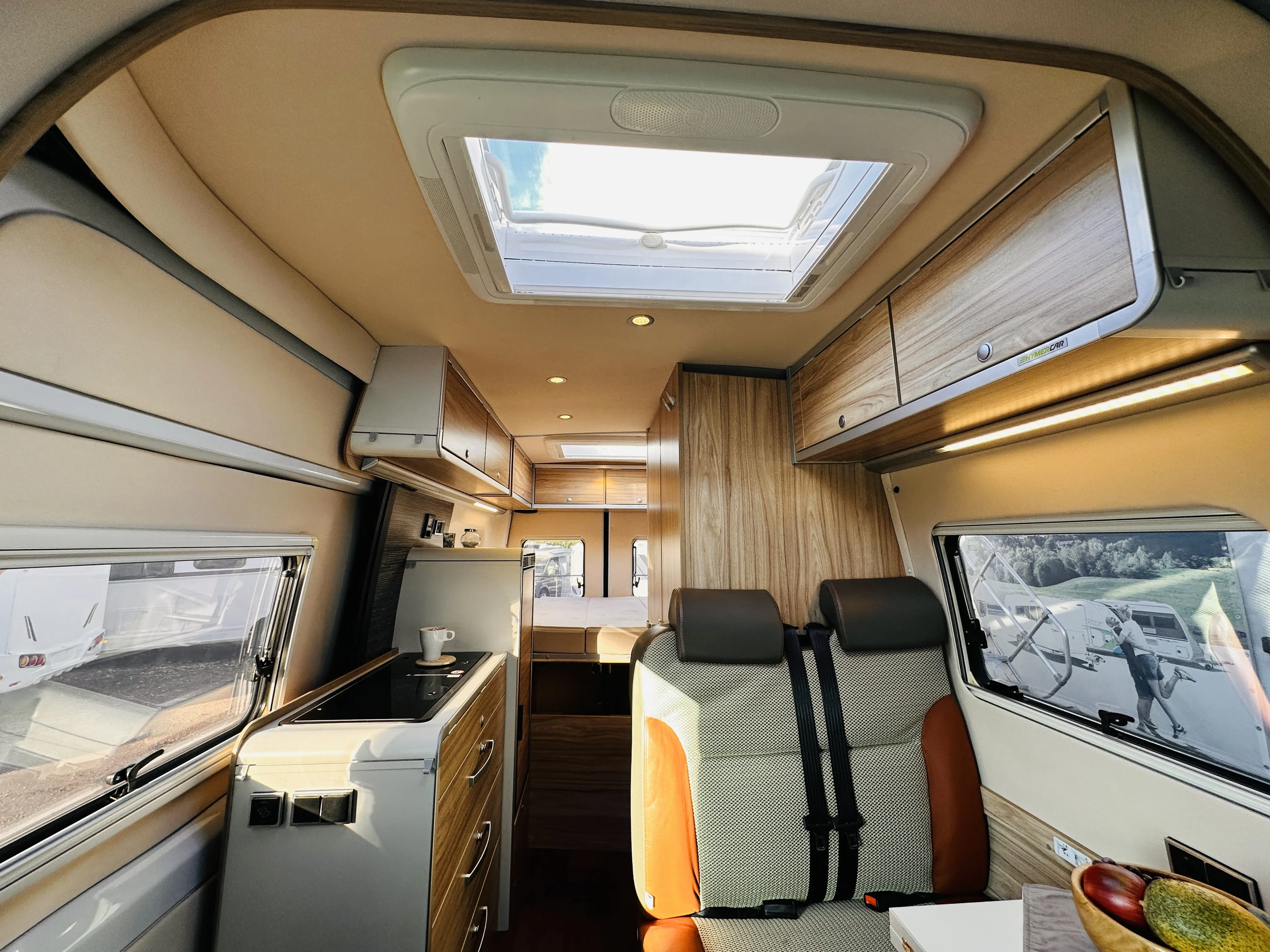Dachlüfter: 700x500 mm (Wohnraum), 400x400 mm (Schlafraum), 280x280 mm (Bad)