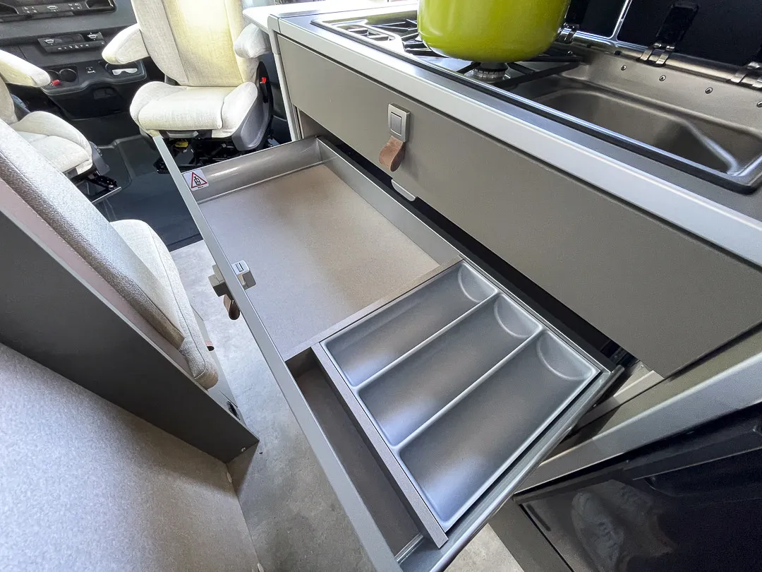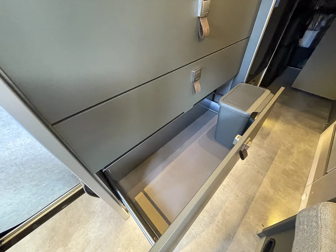 * Der Grand Canyon S zeigt im Alltag seine volle Klasse: elektrische Schiebetür, Markise mit LED-Licht, smarte Stauraumlösungen, WC, Dieselheizung Combi 6D mit Elektroheizstab, zusätzliche 1800-W-Heizoption, Sitzheizung, Lordosenstützen, hochwertige Verdunklung, optimierte Türöffnungen – alles darauf ausgelegt, dass man unterwegs so komfortabel lebt wie zu Hause. Die Carbon-Fensterfolierung setzt außen einen sportlichen Akzent und verleiht dem Fahrzeug einen modernen, urbanen Look.