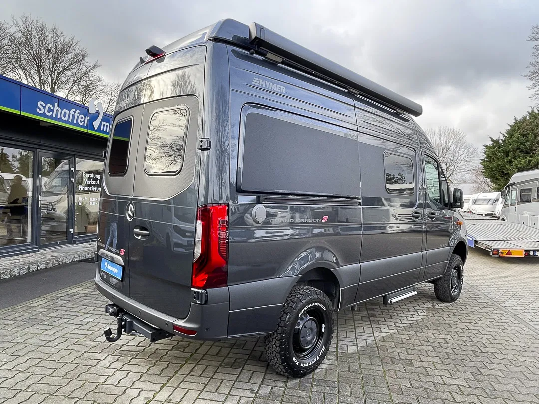 * Der Hymer Grand Canyon S 600 Modelljahr 2025 ist ein Campervan, der sofort Abenteuerlust weckt. Auf Mercedes-Benz Sprinter Basis mit permanentem Allrad, 190-PS-Motor und 9G-Tronic Automatik fährt er sich souverän, ruhig und sicher – auch dort, wo andere Vans aufgeben. Die Heizscheibe, das Wet-Wiper-System, die verstärkte Vorderachse und die großen Assistenzsysteme sorgen dafür, dass man selbst bei Wind, Regen oder im Gelände voller Vertrauen unterwegs ist.