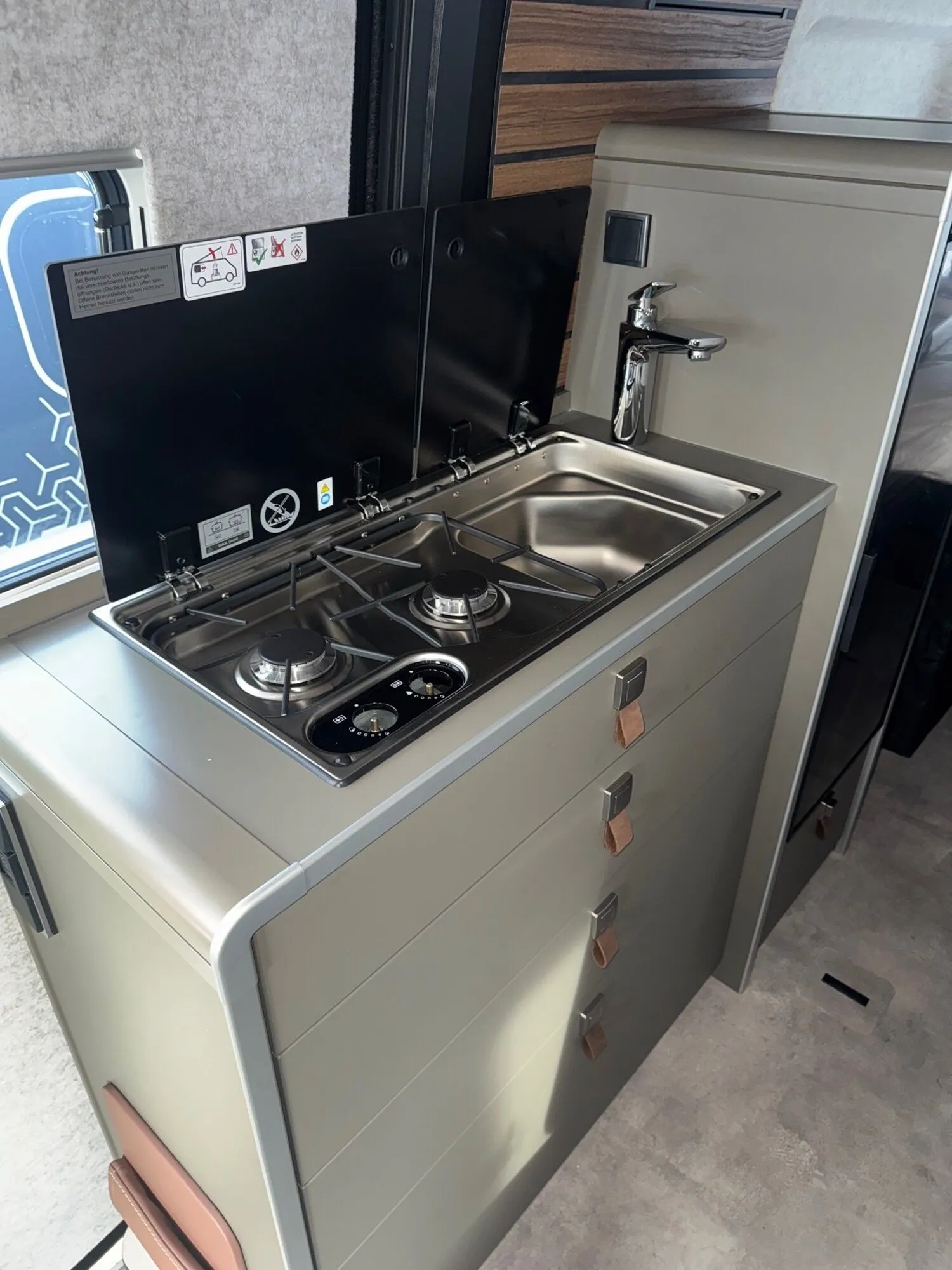 - Ausstellfenster im Heck in Fahrtrichtung links inkl. Verdunkelungsrollo und Mückenschutz