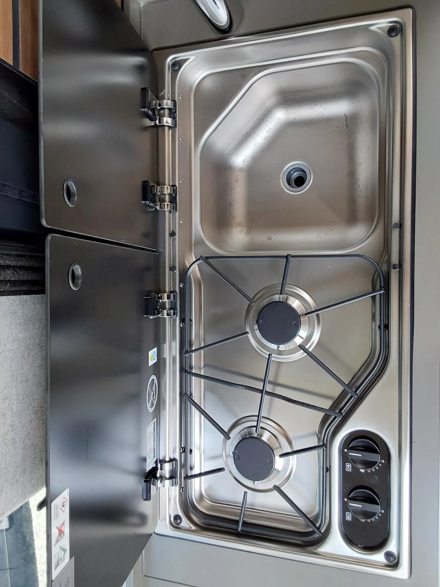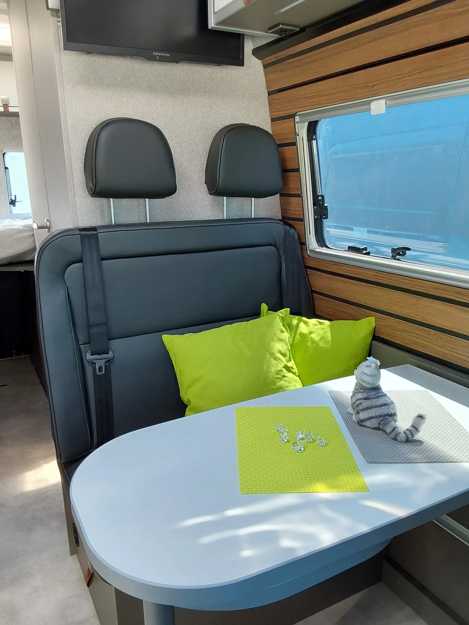 - Ausstellfenster im Heck in Fahrtrichtung links inkl. Verdunkelungsrollo und Mückenschutz