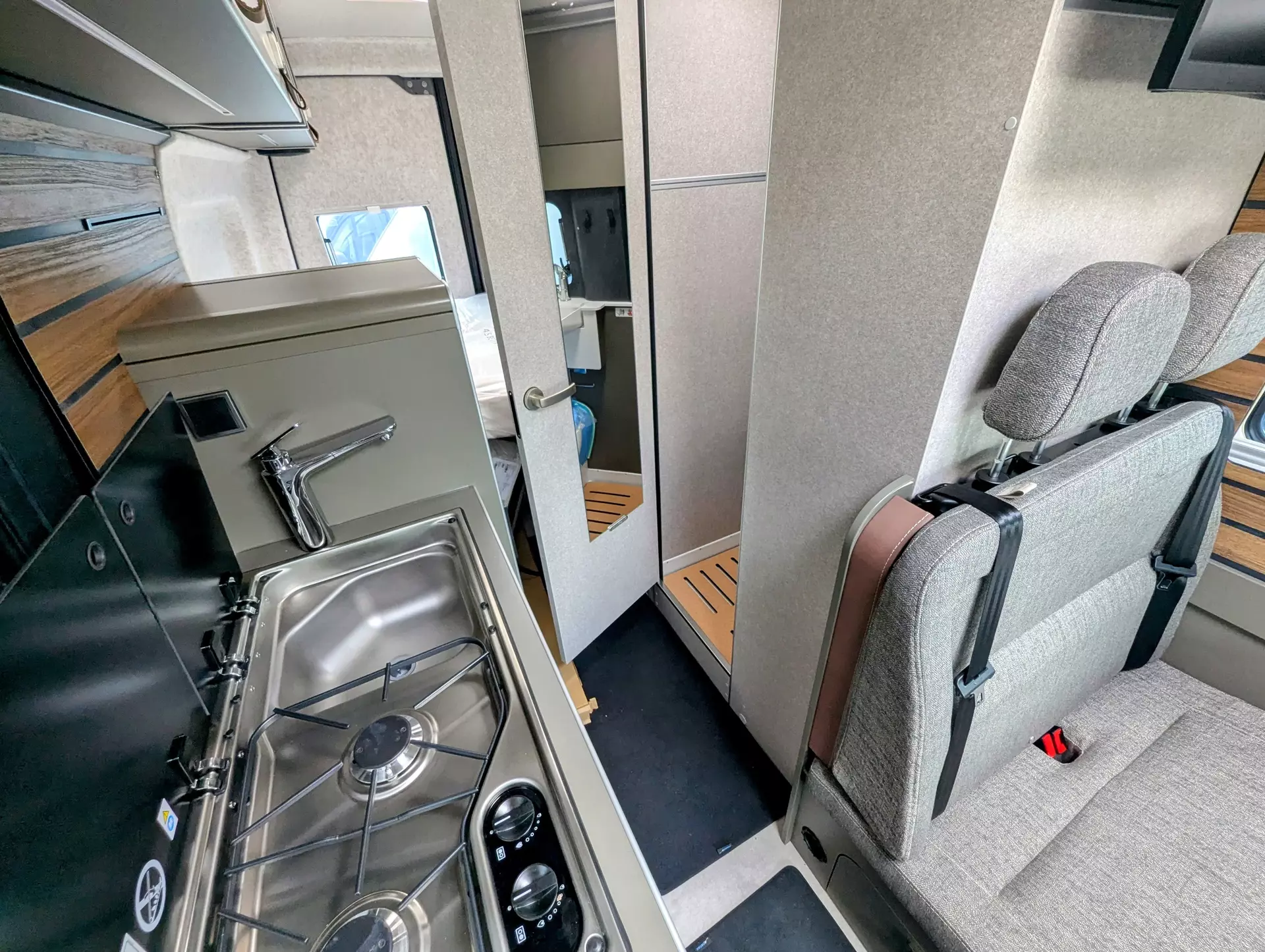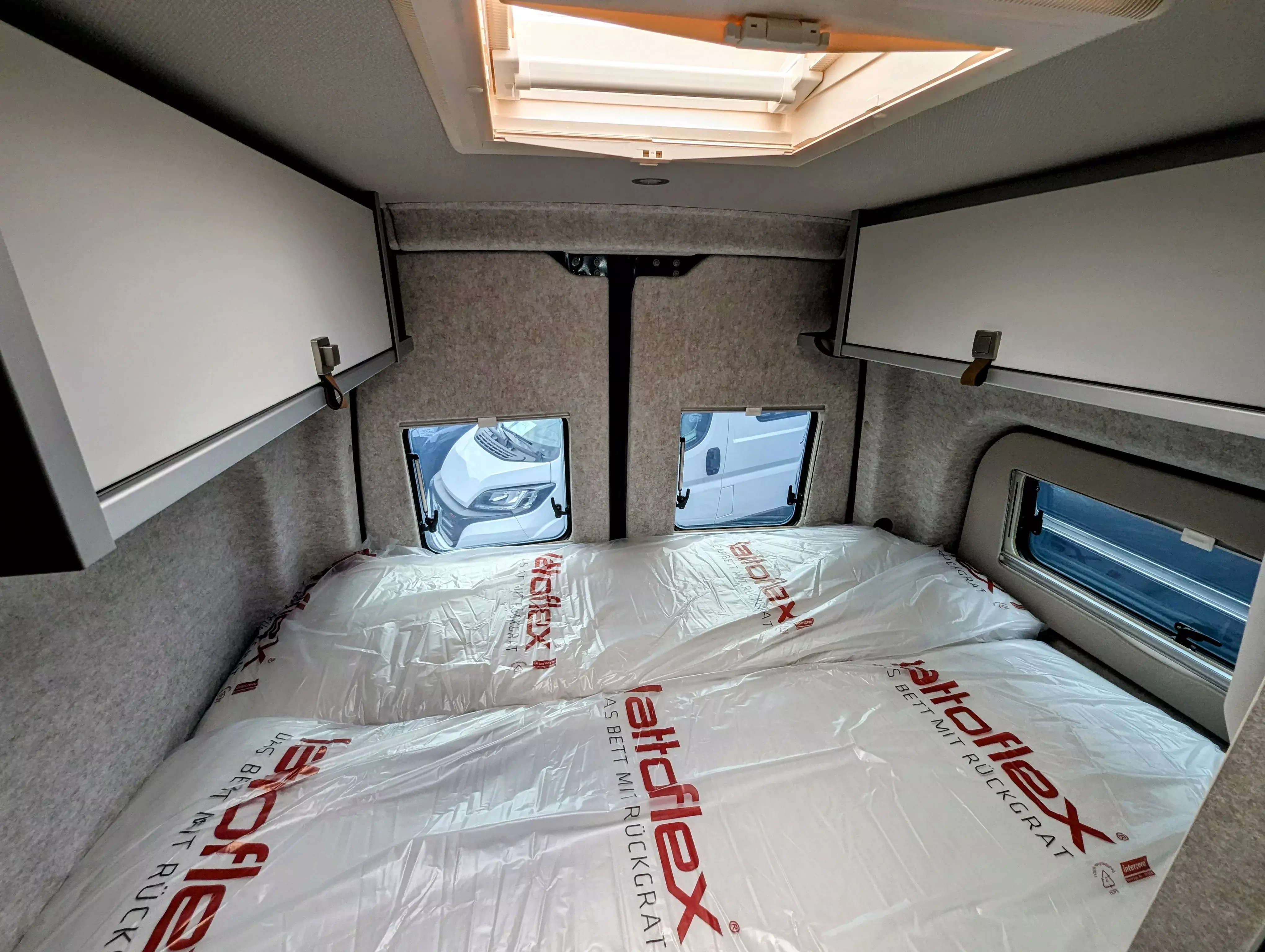- Ausstellfenster im Heck in Fahrtrichtung links inkl. Verdunkelungsrollo und Mückenschutz