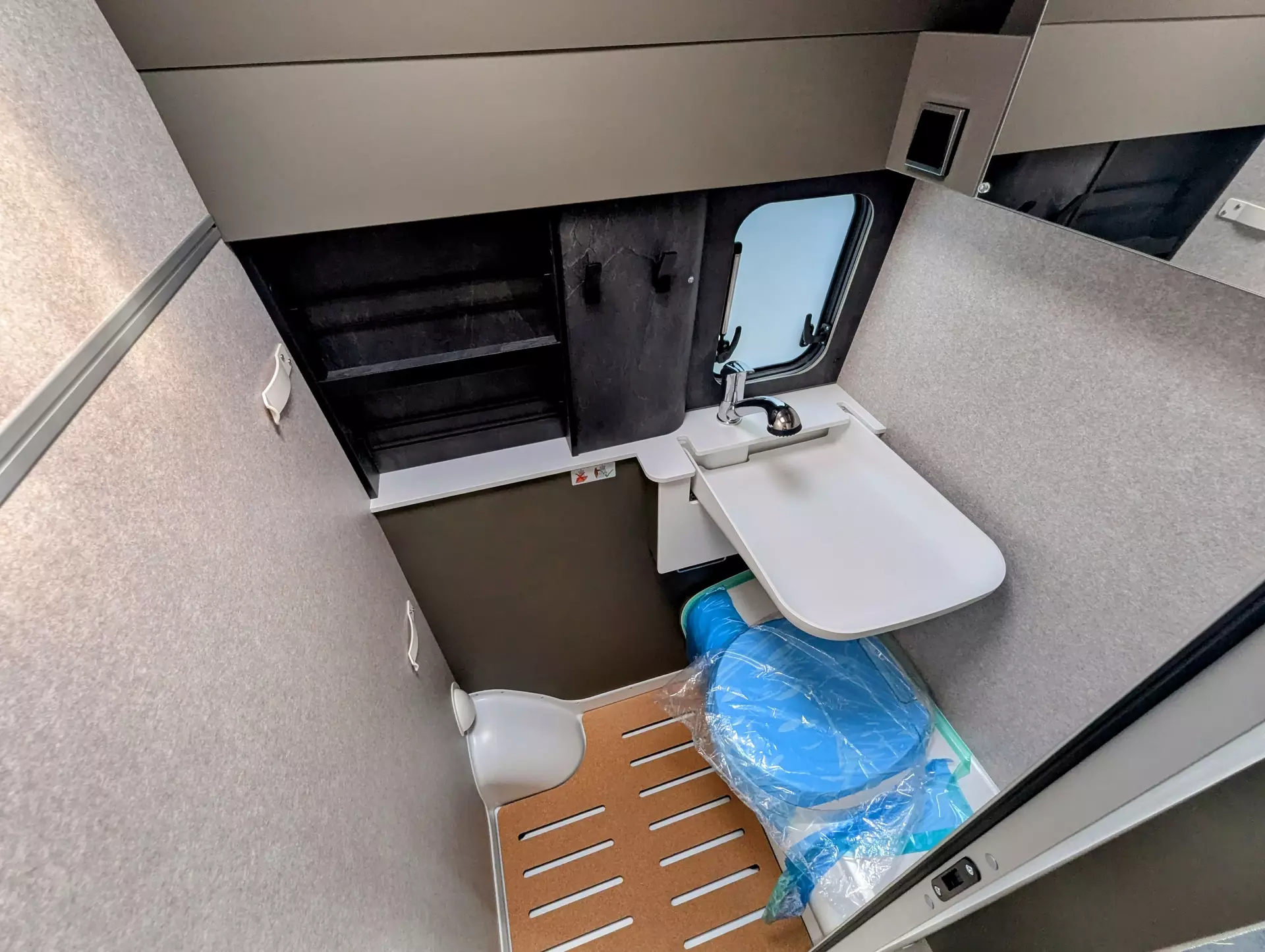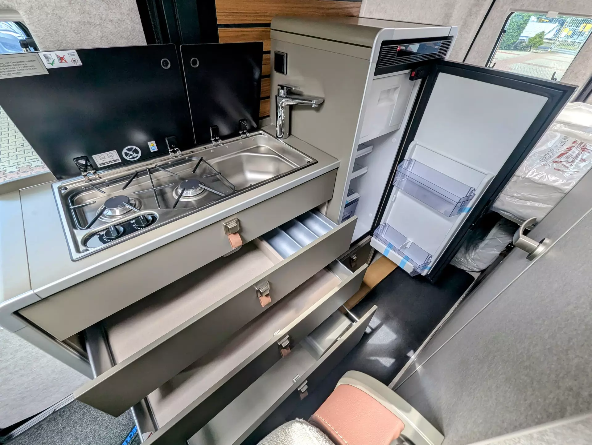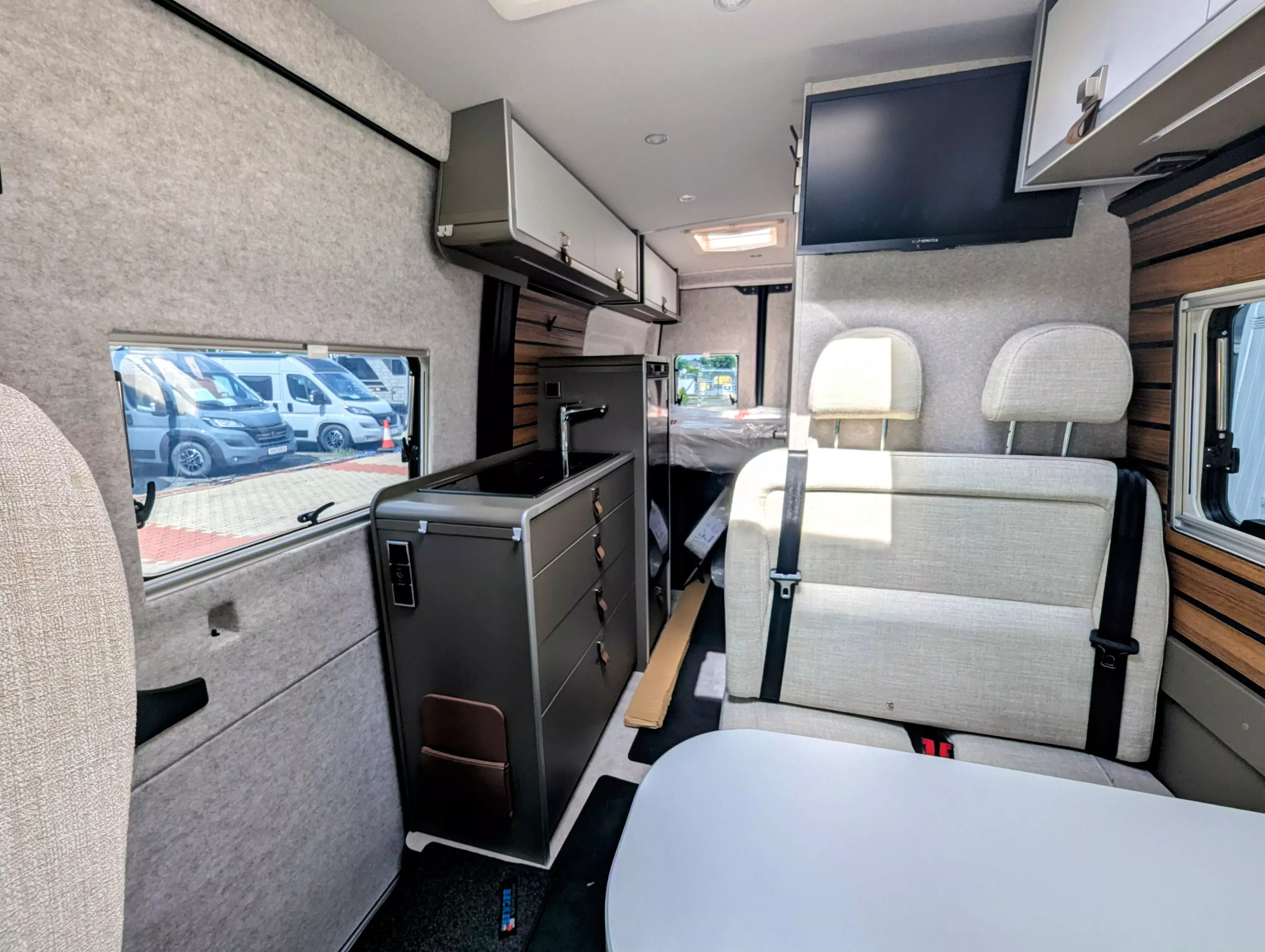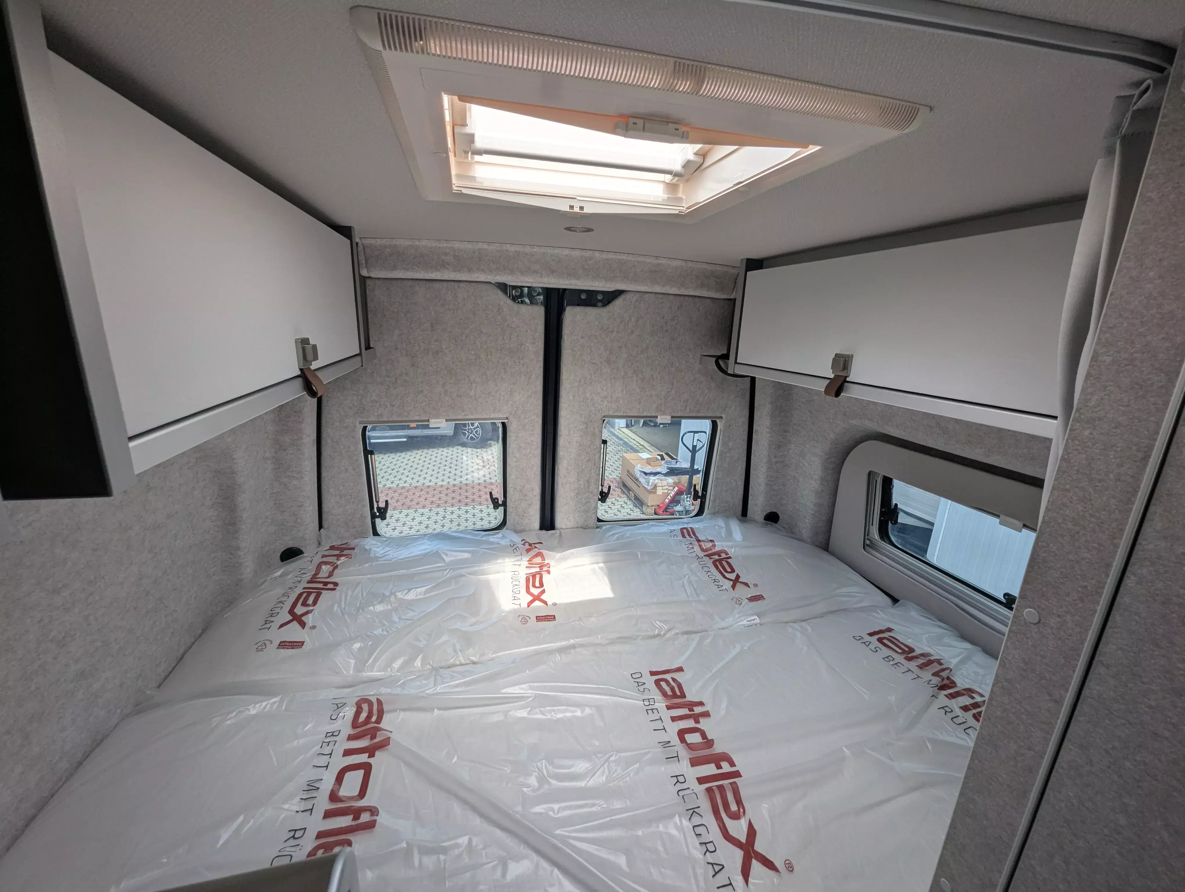 - Ausstellfenster im Heck in Fahrtrichtung links inkl. Verdunkelungsrollo und Mückenschutz