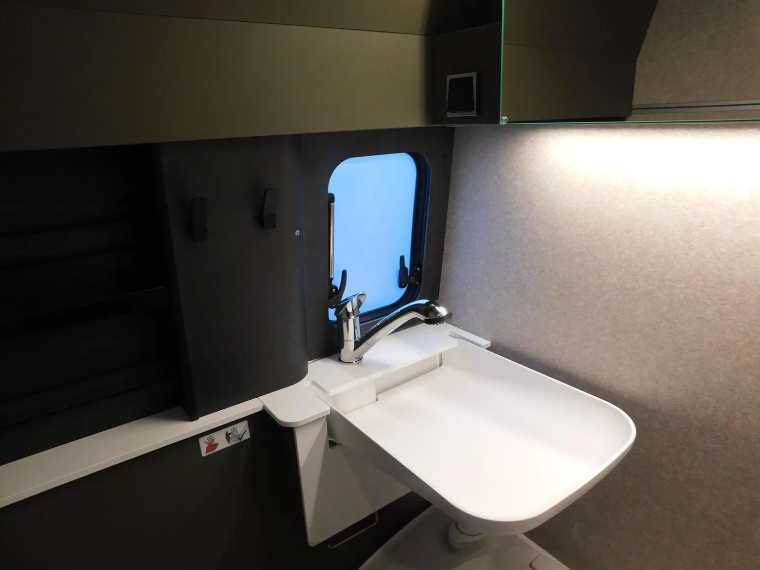- Ausstellfenster im Heck in Fahrtrichtung links inkl. Verdunkelungsrollo und Mückenschutz