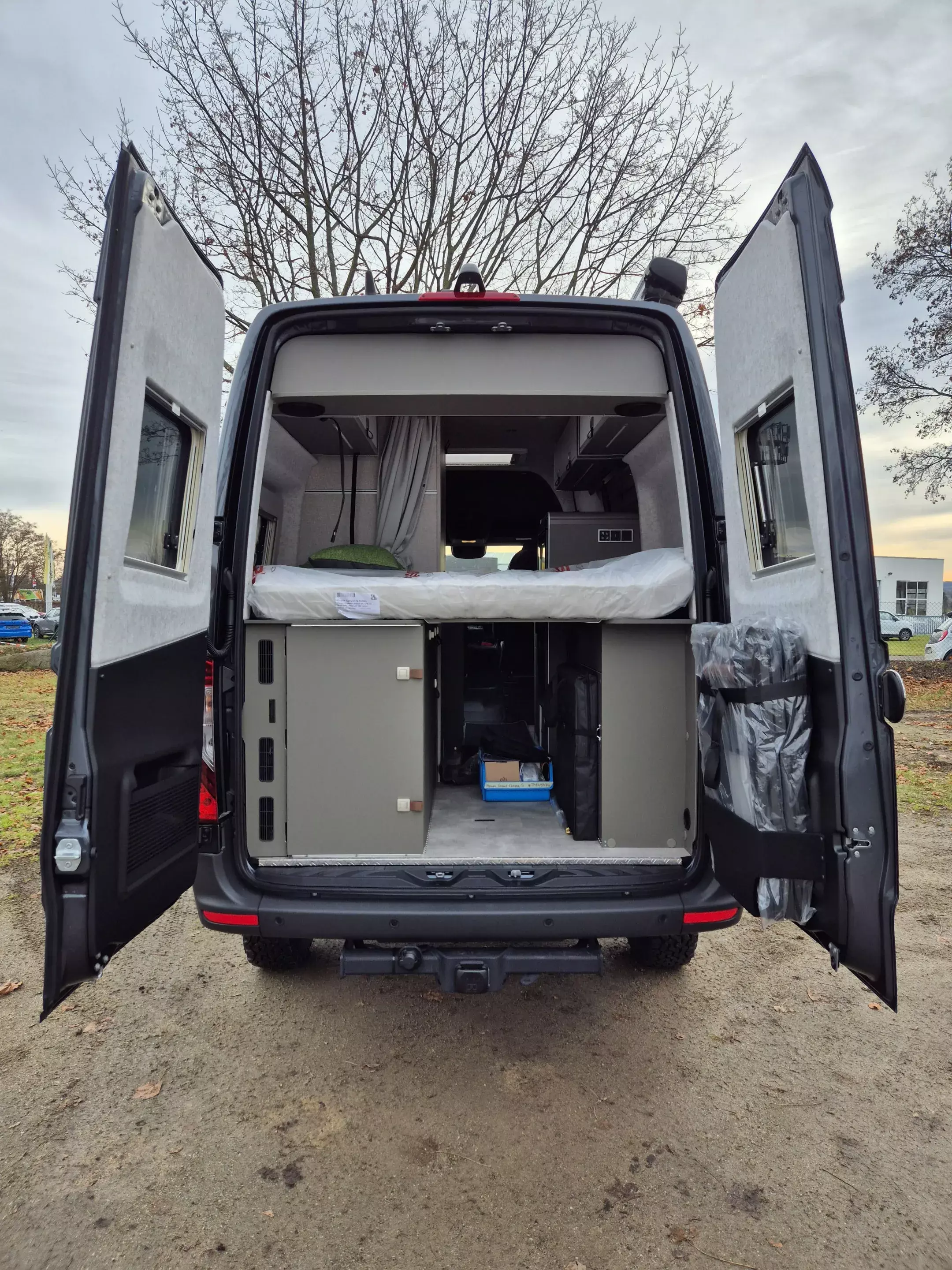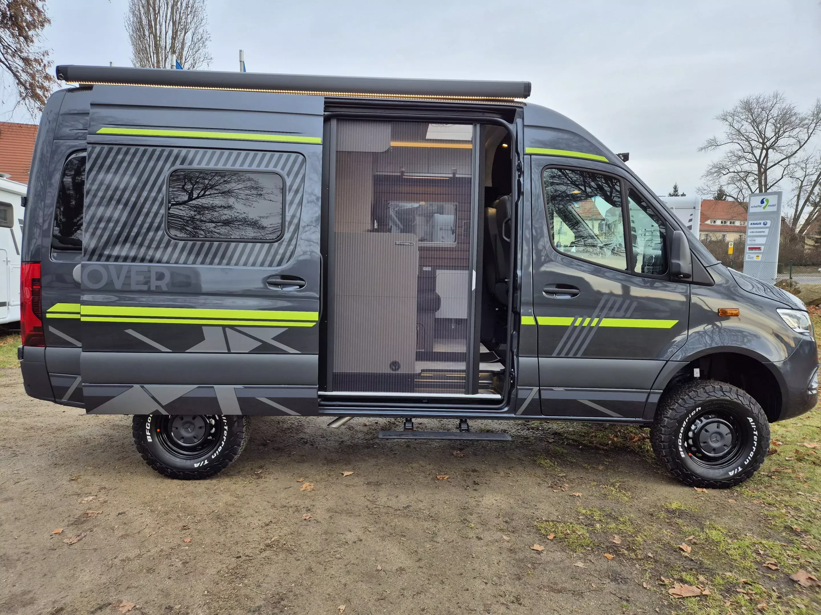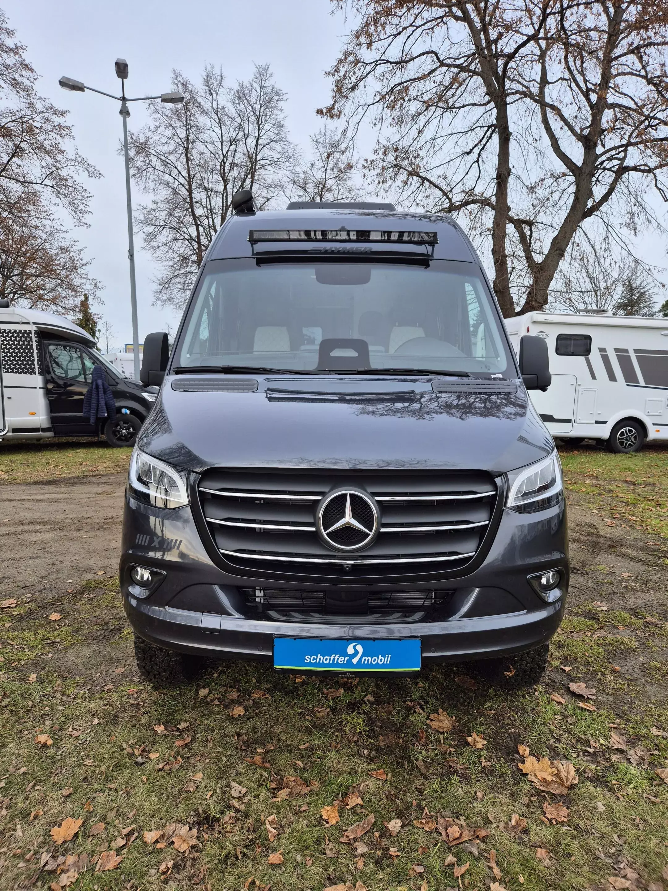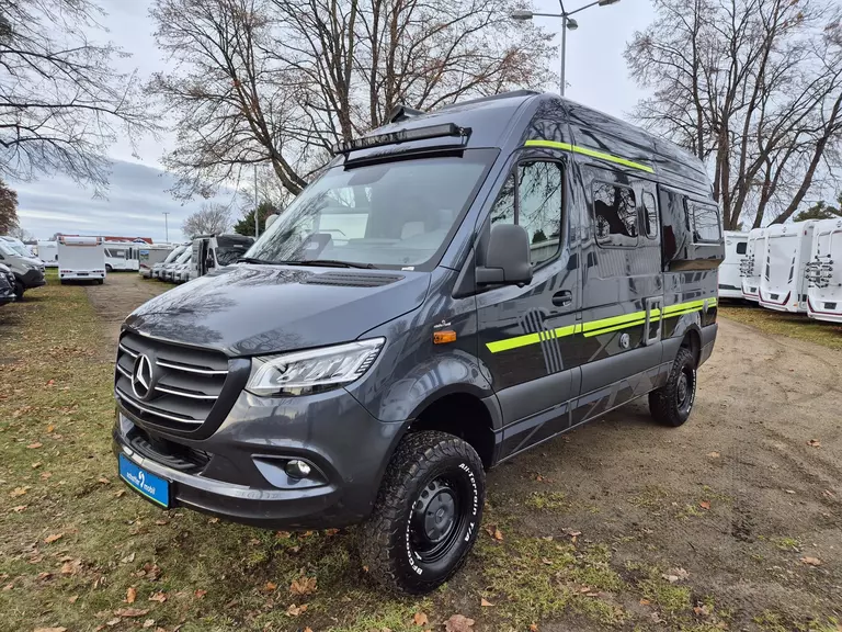 - Sonderedition Cross Over (1): Mercedes-Benz Sprinter 3,88 t - 419 CDI - 141 KW/190 PS -; Euro VI-E; Allradantrieb permanent inkl. Heckleuchten in LED-Technik; Metallic Tenoritgrau; Automatikgetriebe 9G-TRONIC inkl. Hold-Funktion (x19 CDI); Kühlergrill Chrom; LED-High-Performance-Scheinwerfer; Motor-/Unterfahrschutz; Nebelscheinwerfer mit Abbiegelicht; Stoßfänger und Kühlergrillrahmen in Wagenfarbe lackiert; 16" Stahlfelgen (schwarz) mit Stollenbereifung (All-Terrain); Elektrische Schließhilfe Schiebetür rechts