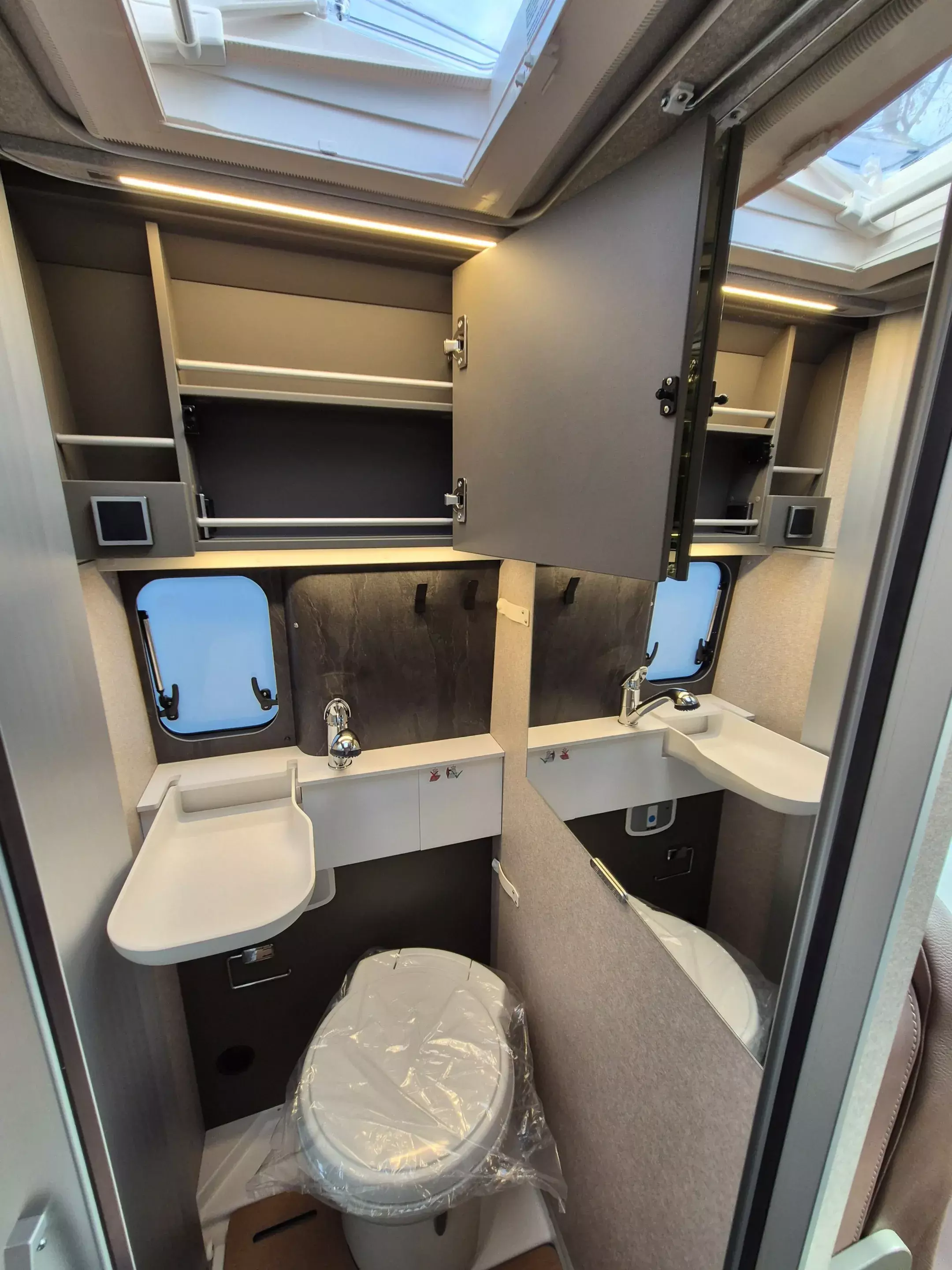 - Ausstellfenster im Heck in Fahrtrichtung links inkl. Verdunkelungsrollo und Mückenschutz